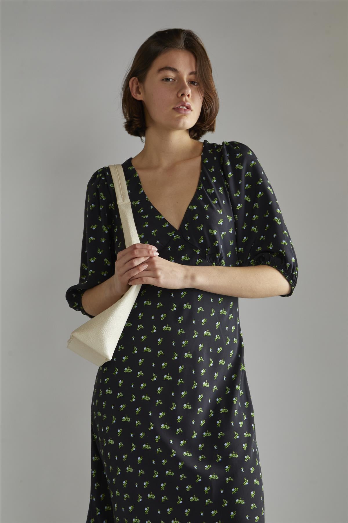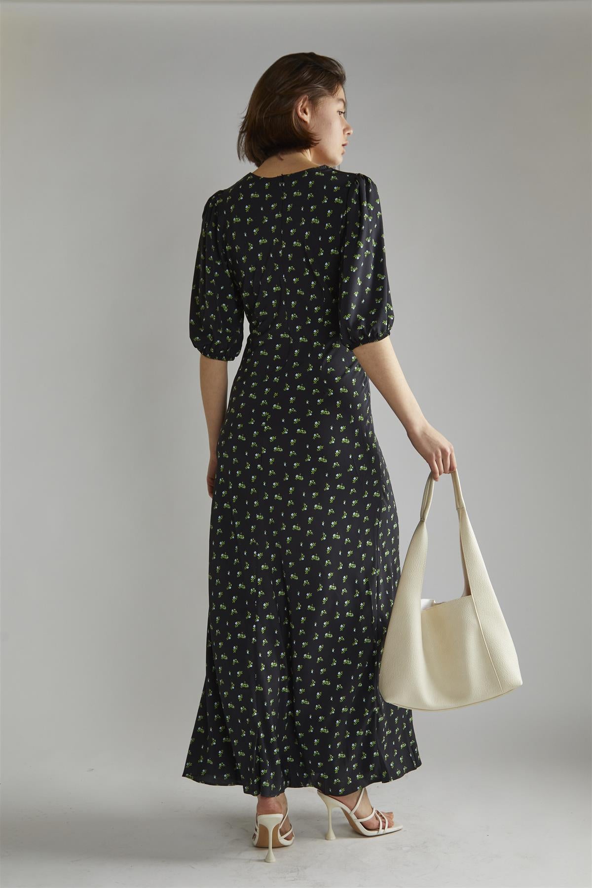 Glamorous Women's Pink Vintage Bud Floral V-neck Tea Midi-Dress. Enjoy summer days in this playful floral V-neck Tea Midi-Dress. Featuring a stylish V-neck, short sleeves, and a fitted bust, you'll feel flirty and fabulous. With an elegant midi-length, you'll turn heads at any warm-weather gathering!