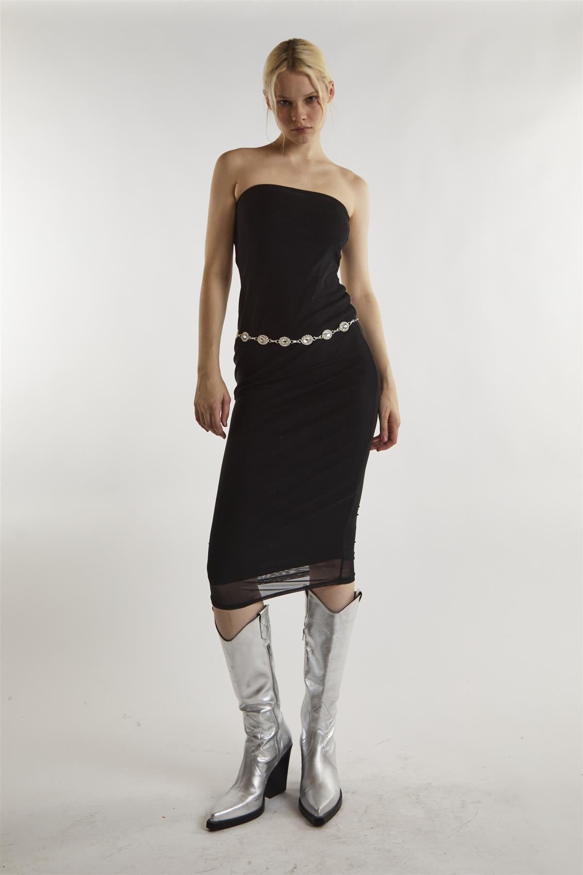 Glamorous Women's Silver Chain Belt . The Silver Chain Belt brings a touch of modern elegance to your look with its unique beaded chain design. Lightweight yet sturdy, this waist belt is crafted to add a hint of shimmer and shape to your favourite outfits.