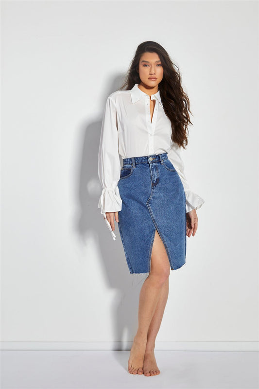 Light Stonewash Denim Fishtail Maxi-Skirt