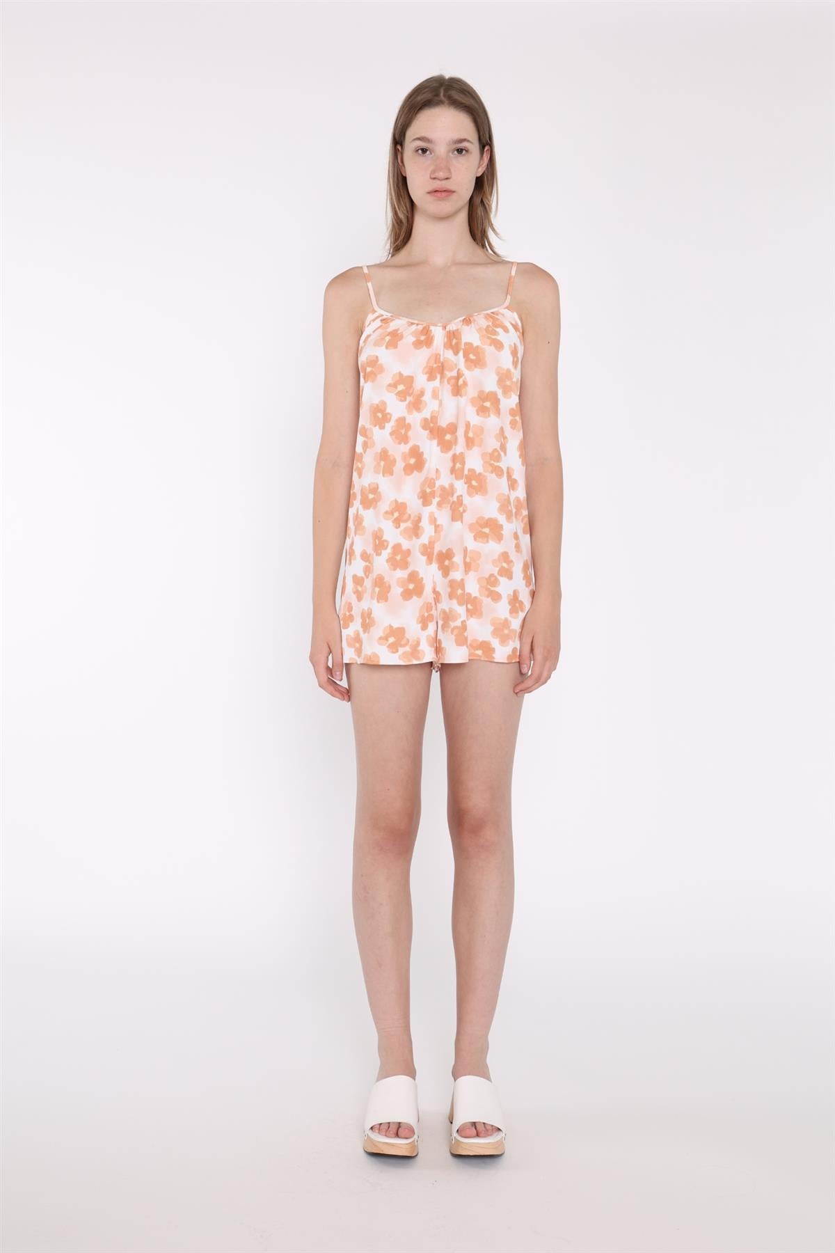 Glamorous Women's Apricot Blurred-Flower Strappy Loose-Fit-Playsuit. Elevate your summer wardrobe with our Apricot Blurred-Flower Strappy Loose-Fit-Playsuit. Its flattering loose-fit design and playful apricot blurred-flower pattern will have you looking both stylish and comfortable. Perfect for any summer occasion, this playsuit offers the perfect combination of fashion and functionality.