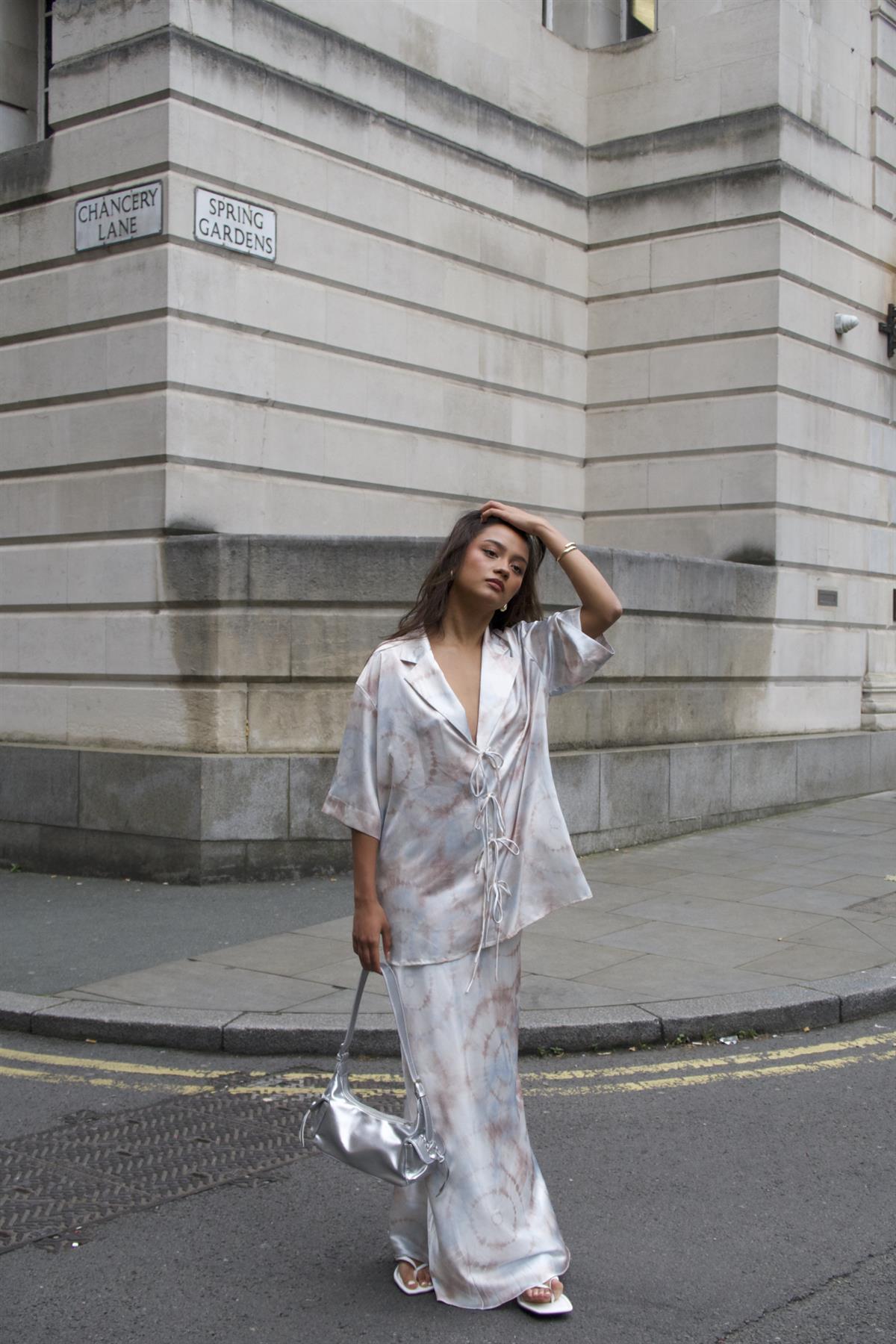 Glamorous Women's Beige-Grey-Watercolour Bias-Cut-Maxi-Skirt . This beige-grey-watercolour bias-cut-maxi-skirt brings a gentle, artistic feel to your wardrobe with its flowing lines and dreamy pattern. The bias cut lets the fabric drape beautifully, moving with you in a way that feels both easy and flattering. Its maxi length offers a relaxed, graceful look that works well for everything from a casual lunch to an evening out. The soft watercolour effect adds a unique touch, making this skirt stand out without being loud. For a coordinated look, try styling it with the matching top-together, they create a harmonious set that’s both comfortable and eye-catching. Pair with simple sandals or sneakers for a laid-back vibe, or dress it up with delicate jewelry for a little extra charm.