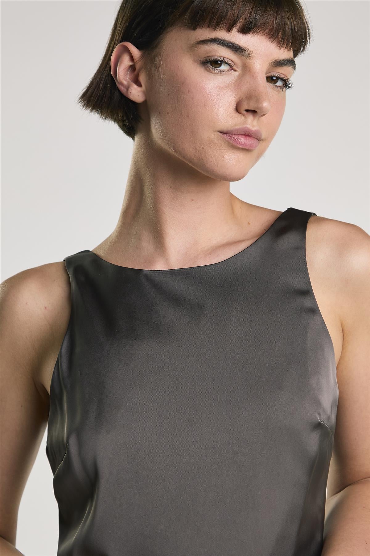 Bitter Chocolate Boat Neck Mini Shift Dress