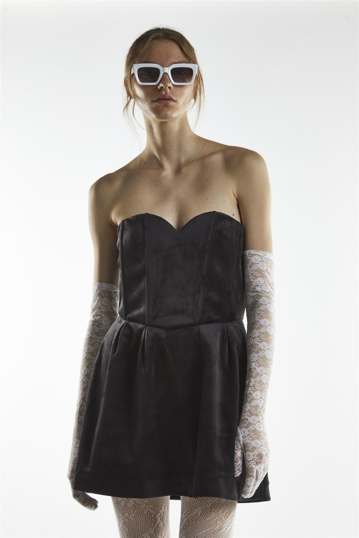 Collective the Label Women's Black Lucy Bandeau Sweetheart Mini-Dress. This bandeau mini dress from Collective The Label brings a mix of structure and softness that feels both easy and thoughtful. The sweetheart neckline adds a subtle shape up top, while the boning in the bodice gives support and a defined fit without feeling stiff. It’s cut in an A-line silhouette that flares out just enough to move with you, and the strapless design keeps the look clean and open. The concealed zip at the back helps everything stay in place while keeping the finish neat. Dress it up with simple heels or pair it with a relaxed blazer for a softer contrast—it’s one of those pieces that can shift with your plans.
