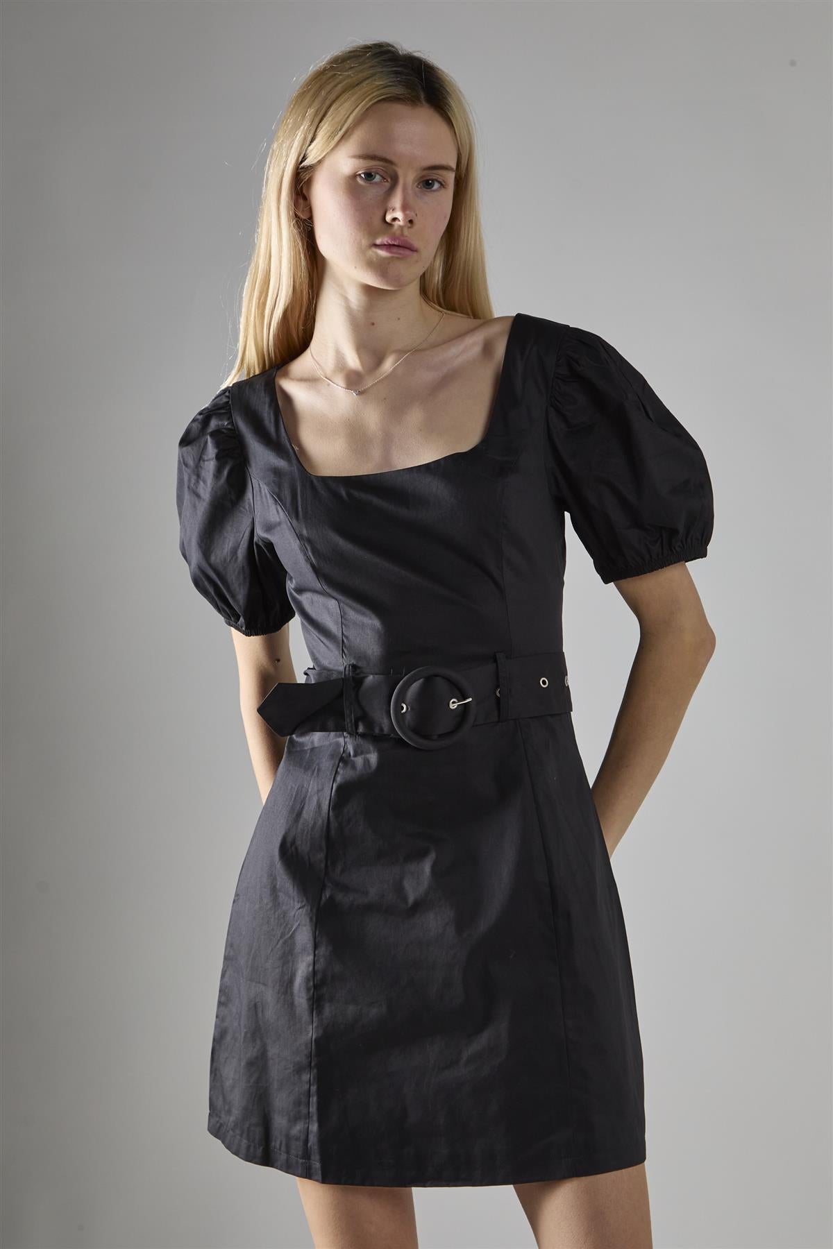 Glamorous Women's Black Belted Peplum Mini-Dress. Say hello to your new favourite dress that's bound to turn heads and boost your confidence. This mini-dress is a true showstopper with its flattering peplum silhouette and chic square neckline. The short statement sleeves add a touch of drama, making it perfect for those special occasions or nights out on the town. Cinch your waist with the included belt to create an hourglass figure that'll have you feeling like a million bucks. Don't worry about struggling with zippers - the concealed fastening at the back ensures a smooth look and easy wear. This dress is a versatile gem that can take you from office to cocktail hour with just a change of accessories. Pair it with strappy heels and statement earrings for a glamorous evening look, or dress it down with ankle boots and a denim jacket for a more casual vibe. Whatever the occasion, this mini-dress is ready to help you make a lasting impression.