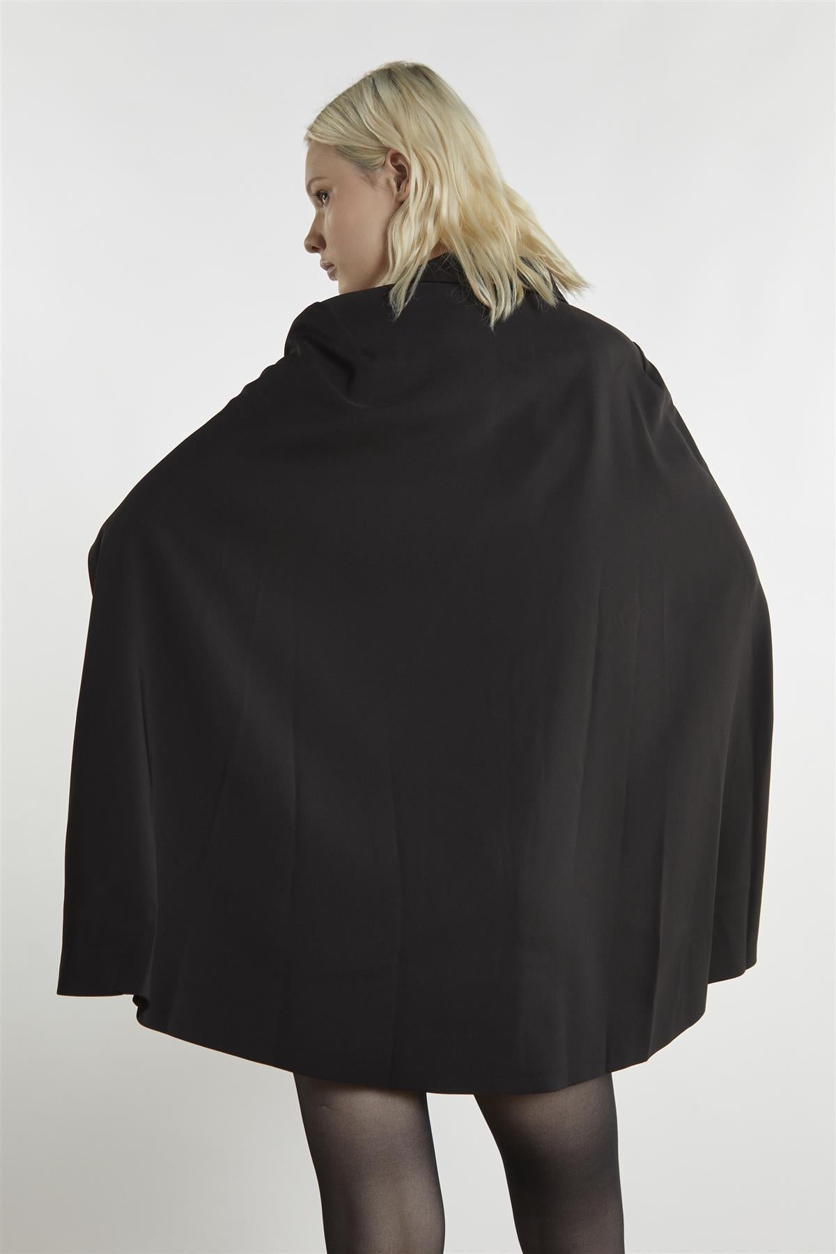 Narrated Women's Black Blazer-Cape Mini-Dress. Bring a tailored twist to your day with this blazer-cape mini-dress, which blends classic sharp lines and easy styling in an unexpected way. Crafted with a double-breasted front and a mini length that keeps things fresh, this piece is all about laid-back confidence, allowing you to move through plans with a little extra flair. The cape detail adds a sense of movement and brings just enough drama, staying soft on the shoulders while giving your outfit a unique edge. Pair it with your go-to loafers or simple ankle boots, and let the structure do the talking. With its understated yet bold look, this dress is ready for work meetings, after-hours get-togethers, or simply adding a lift to any routine—no overthinking required.