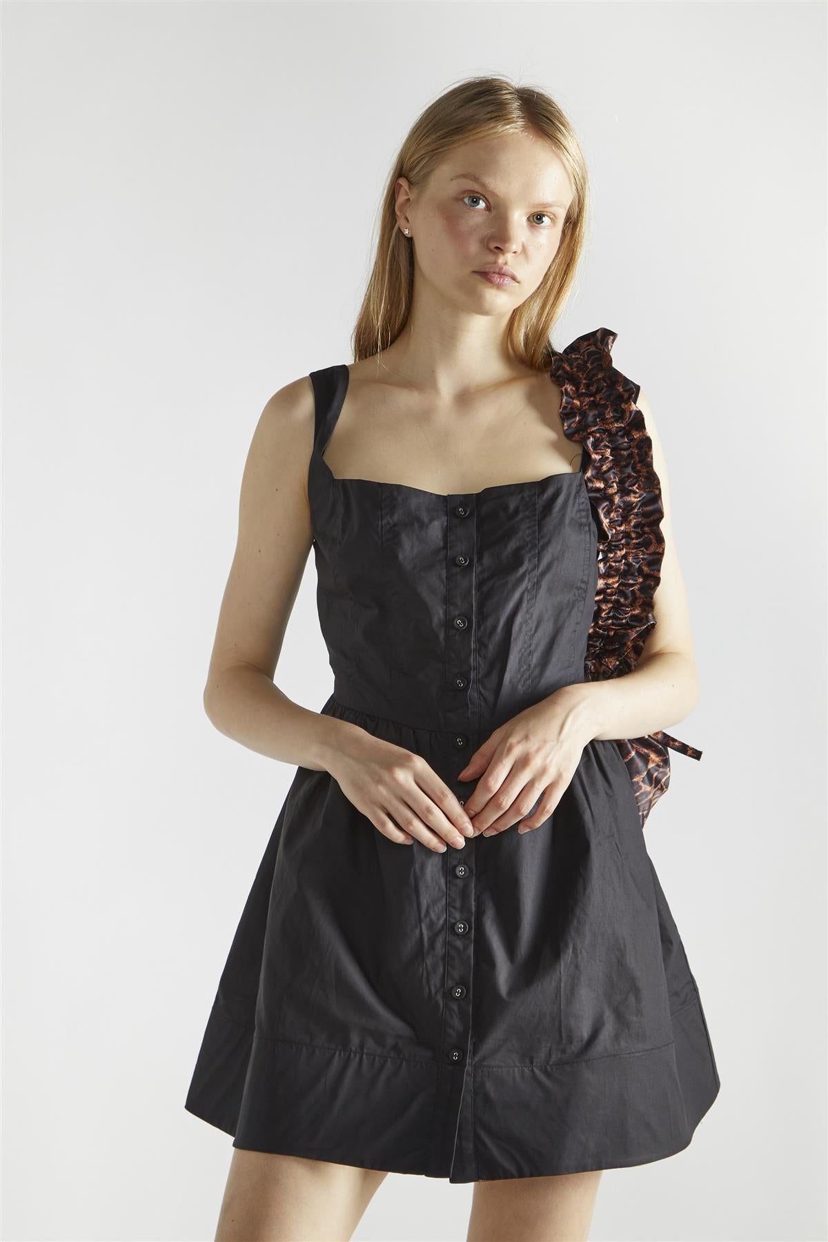 Collective the Label Women's Diana Women's Black Button Front Pleated Mini-Dress. The Black Diana Button Front Pleated Mini-Dress is a chic and versatile piece that combines classic style with modern flair. This sleeveless dress boasts a flattering square neckline, perfect for showing off your favourite necklace or a sun-kissed glow. The structured corset design accentuates your curves, creating a beautiful silhouette that's both feminine and confident. The button-front detail adds a touch of vintage charm, while the pleated skirt brings movement and playfulness to the overall look. This little black dress is a true wardrobe staple, suitable for a variety of occasions. Dress it up with heels and statement earrings for a night out, or keep it casual with flat sandals and a denim jacket for daytime adventures. The timeless black colour makes it easy to accessorise, allowing you to create countless looks with just one dress. It's comfortable, stylish, and sure to become a go-to piece in your collection.