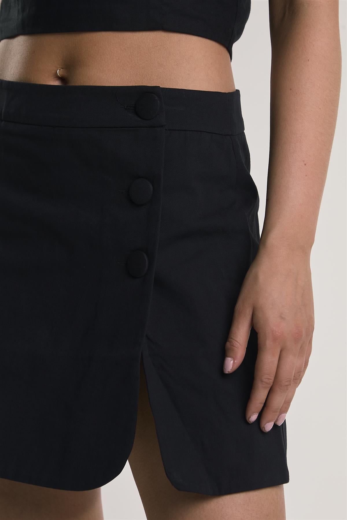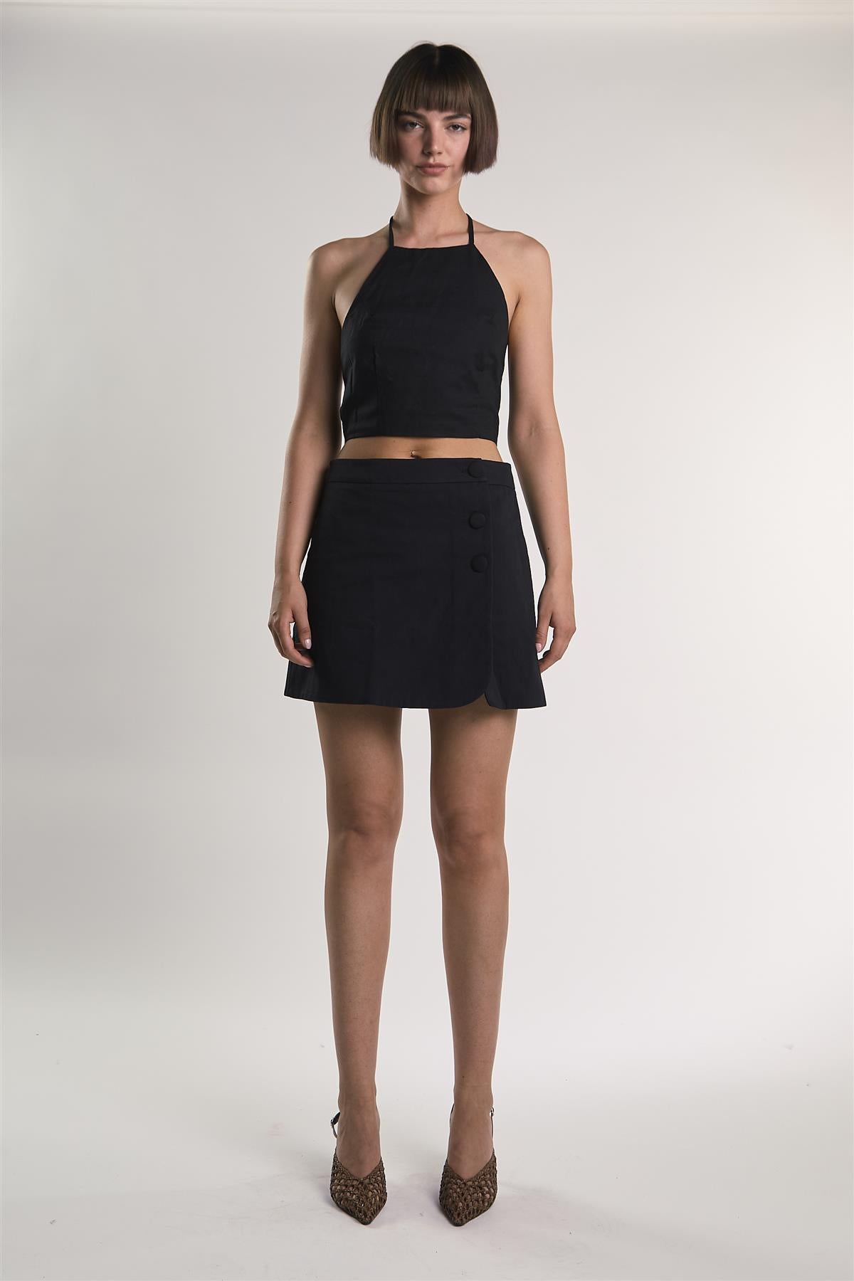 The Button Up Mini Skirt refreshes a classic with its flattering A-line silhouette that flares softly for ease of movement. A front button fastening adds subtle detail without overwhelming the look. Versatile and reliable, it pairs effortlessly with anything from a simple tank to a silk blouse for a finish that feels polished with minimal effort.