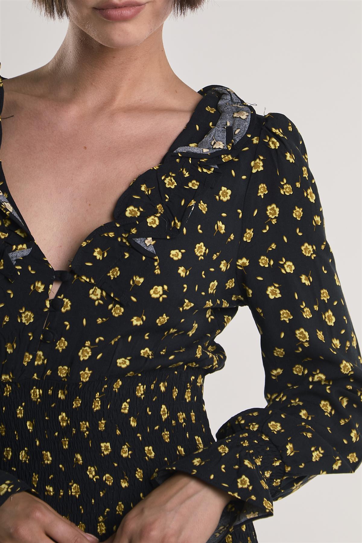 This Long Sleeve Ruffle Trim Mini Dress has a light, playful energy with just the right amount of detail. The ruffle trim adds soft movement while the shirred waist brings gentle shape without sacrificing comfort, making it easy to wear for longer days. Perfect for pairing with boots, making it an easy transition from day to night