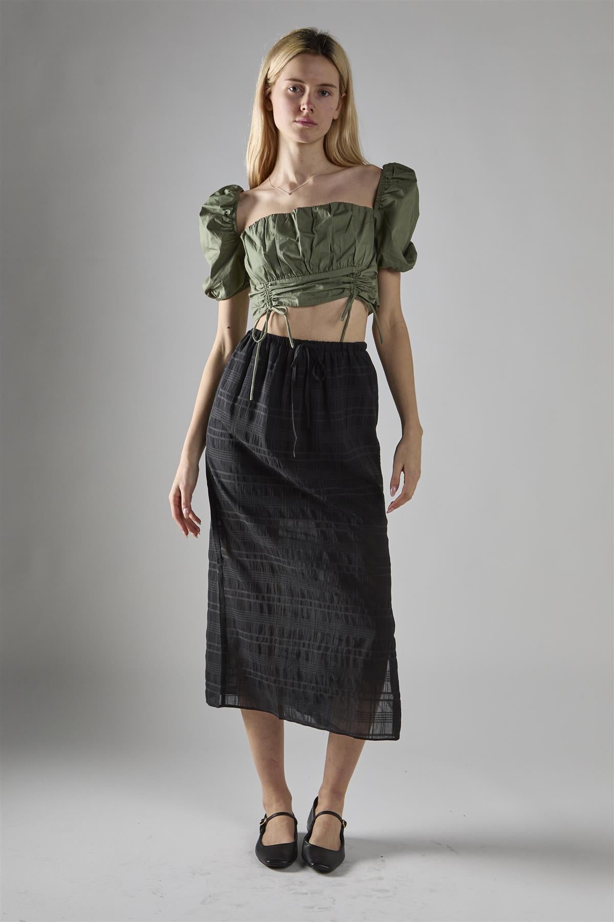 Glamorous Women's Black Check High-Waist Split Thigh Midaxi-Skirt. This high-waist midaxi skirt is a true wardrobe game-changer, combining classic charm with a modern twist. The check pattern adds a timeless appeal, while the daring thigh split brings a touch of sass to your look. It's the kind of skirt that makes you feel instantly put-together, even on those hectic mornings. The elasticated waistband is a dream come true, offering comfort that lasts all day without sacrificing style. As you walk, the leg split creates a captivating silhouette, allowing for ease of movement and a subtle peek of skin. This versatile piece effortlessly transitions from office to evening - pair it with a crisp button-down for a professional look, or dress it up with a silky camisole for a night out. The midaxi length strikes the perfect balance, flattering all heights and body types. It's not just a skirt; it's a confidence booster that'll have you strutting your stuff wherever you go. So go ahead, make this your new favourite piece - your wardrobe (and your confidence) will thank you.