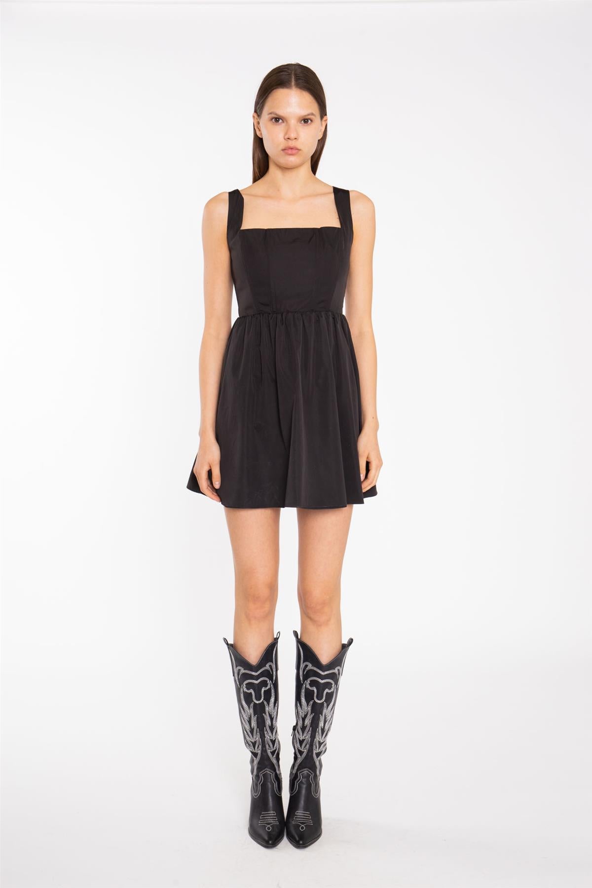 Glamorous Women's Black Corset Skater Mini-Dress. Steal the show and make a statement with this black corset skater mini-dress! Featuring a square neckline and boning design for structure, it will give you an edgy and flattering silhouette. Style over a top with a statement collar or sleeves for a truly show stopping look!