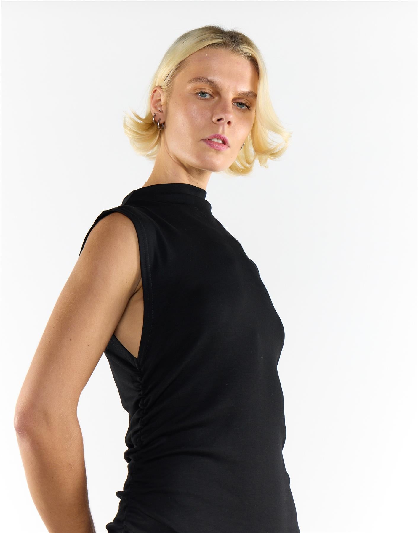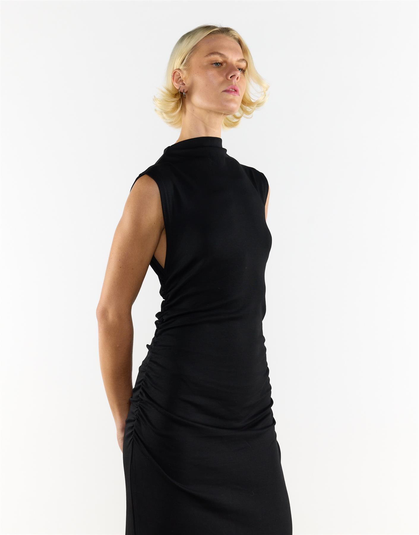 Narrated Women's Black Cotton Mock Neck Long Dress. Bring effortless sophistication to your wardrobe with this elegant cotton maxi dress, designed to flatter with timeless simplicity. The mock neck adds a refined, modern edge that elongates the neckline, while the sleeveless cut keeps the silhouette clean and easy to wear. Crafted from soft, breathable cotton, it offers lasting comfort and a smooth drape that moves beautifully with every step. The maxi length creates a graceful flow, giving the piece an understated yet confident presence. Perfect for dressing up or down, this versatile style pairs seamlessly with minimalist accessories and simple sandals for a polished finish that feels naturally refined.