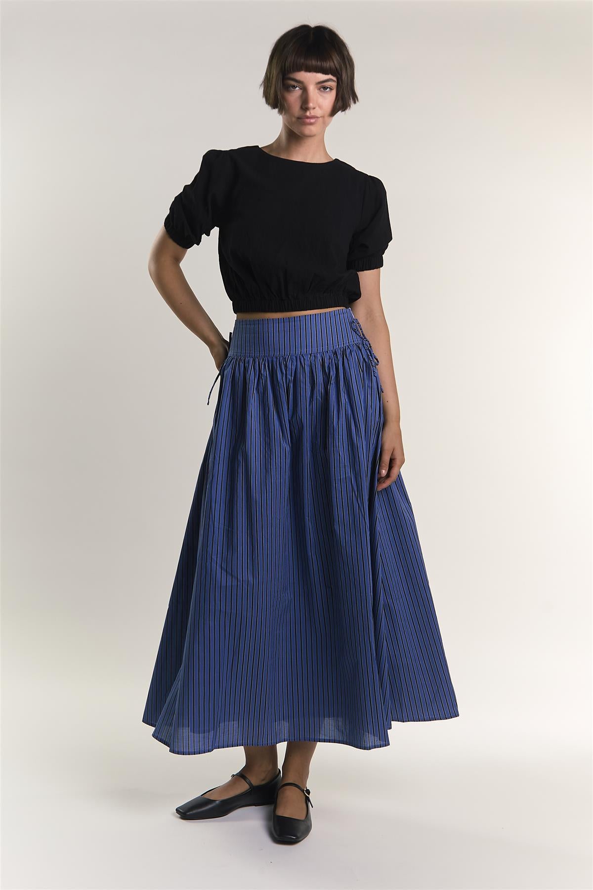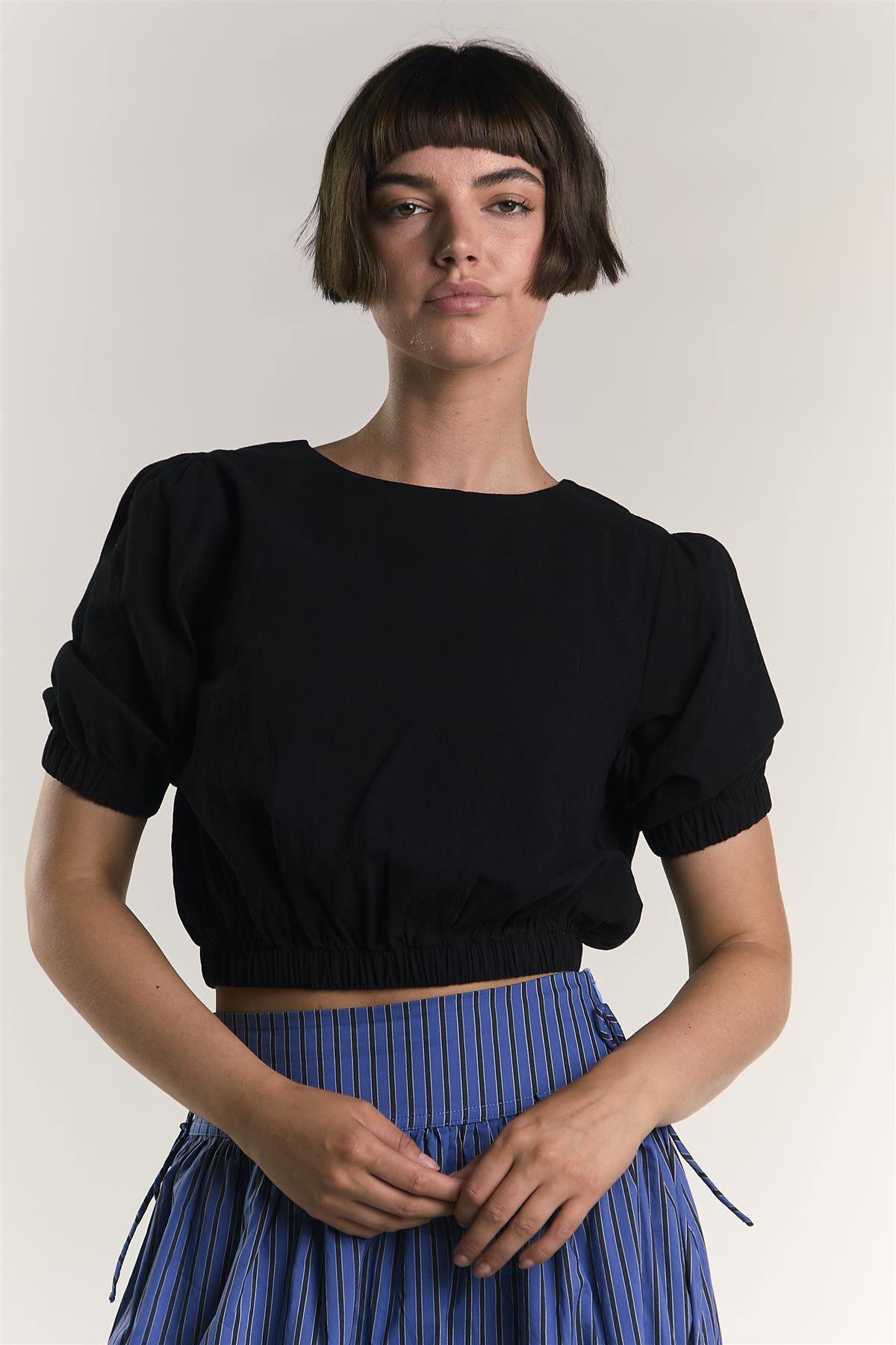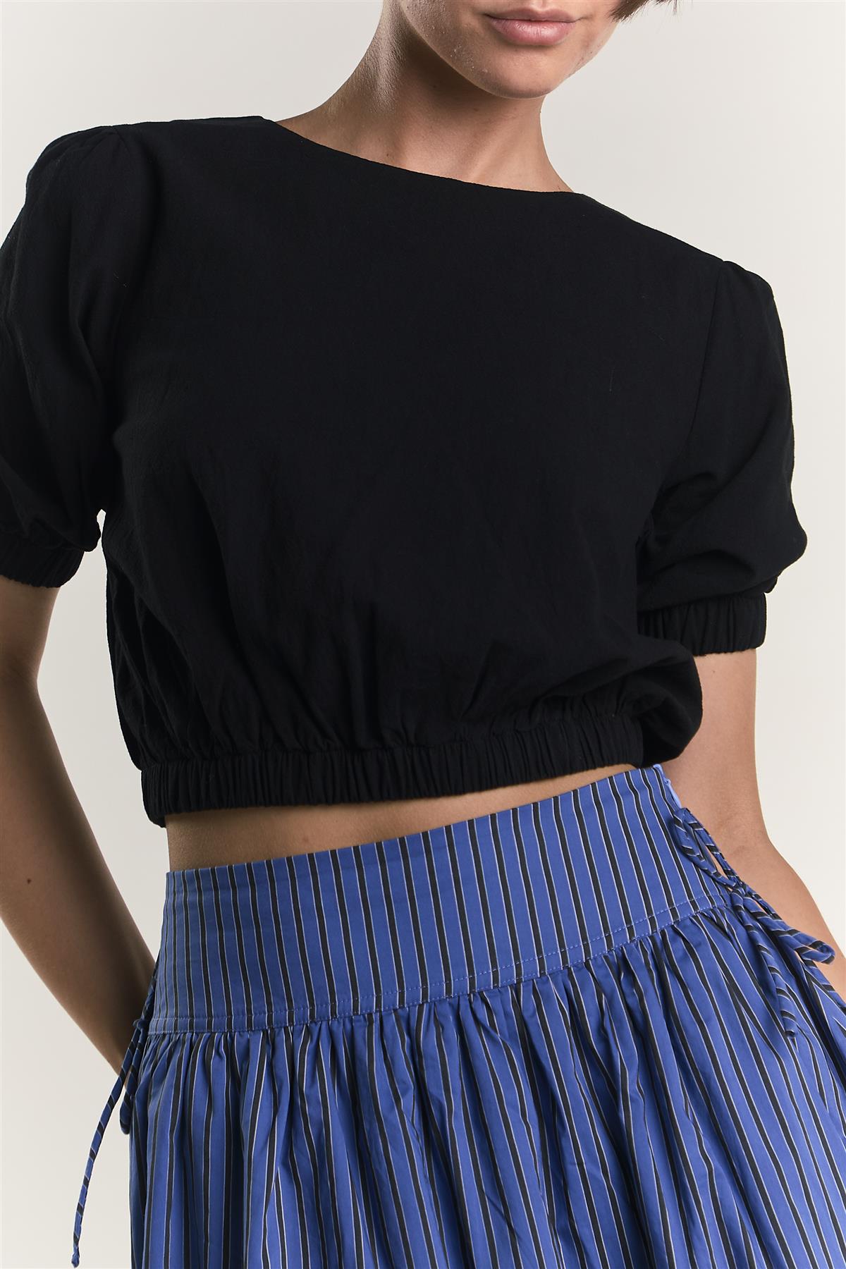 The Crew Neck Puff Sleeve Top blends clean simplicity with a puff sleeve. The classic crew neckline balances playfulness, while an elasticated waistband adds gentle shape without feeling restrictive. Finished with a button fastening at the back, it pairs effortlessly with a flowing midi skirt and sandals.