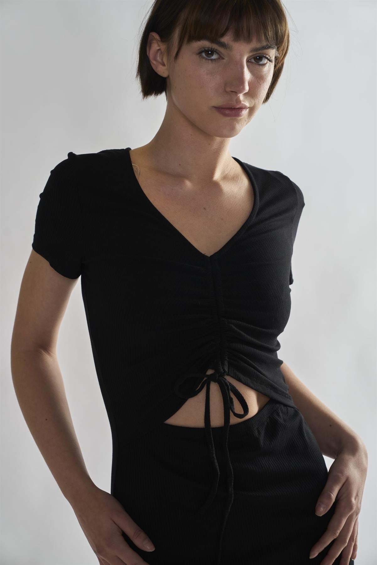 Glamorous Women's Black Cut-Out- Mini-Dresses. This black cut-out mini dress brings a playful twist to your wardrobe, combining a flattering V-neck with a stylish tie front for a look that feels both easy and unique. The cut-out detail adds a hint of fun, letting just a little skin peek through without overdoing it, while the mini length keeps things light and breezy for sunny days or evenings out. The tie front lets you adjust the fit to your liking, so you always feel comfortable and confident. Soft fabric moves with you, making this dress a great choice for everything from casual brunches to spontaneous nights with friends. Pair it with your favourite sandals or ankle boots for an outfit that’s as relaxed as it is eye-catching, and enjoy the way it brings a fresh energy to your day.