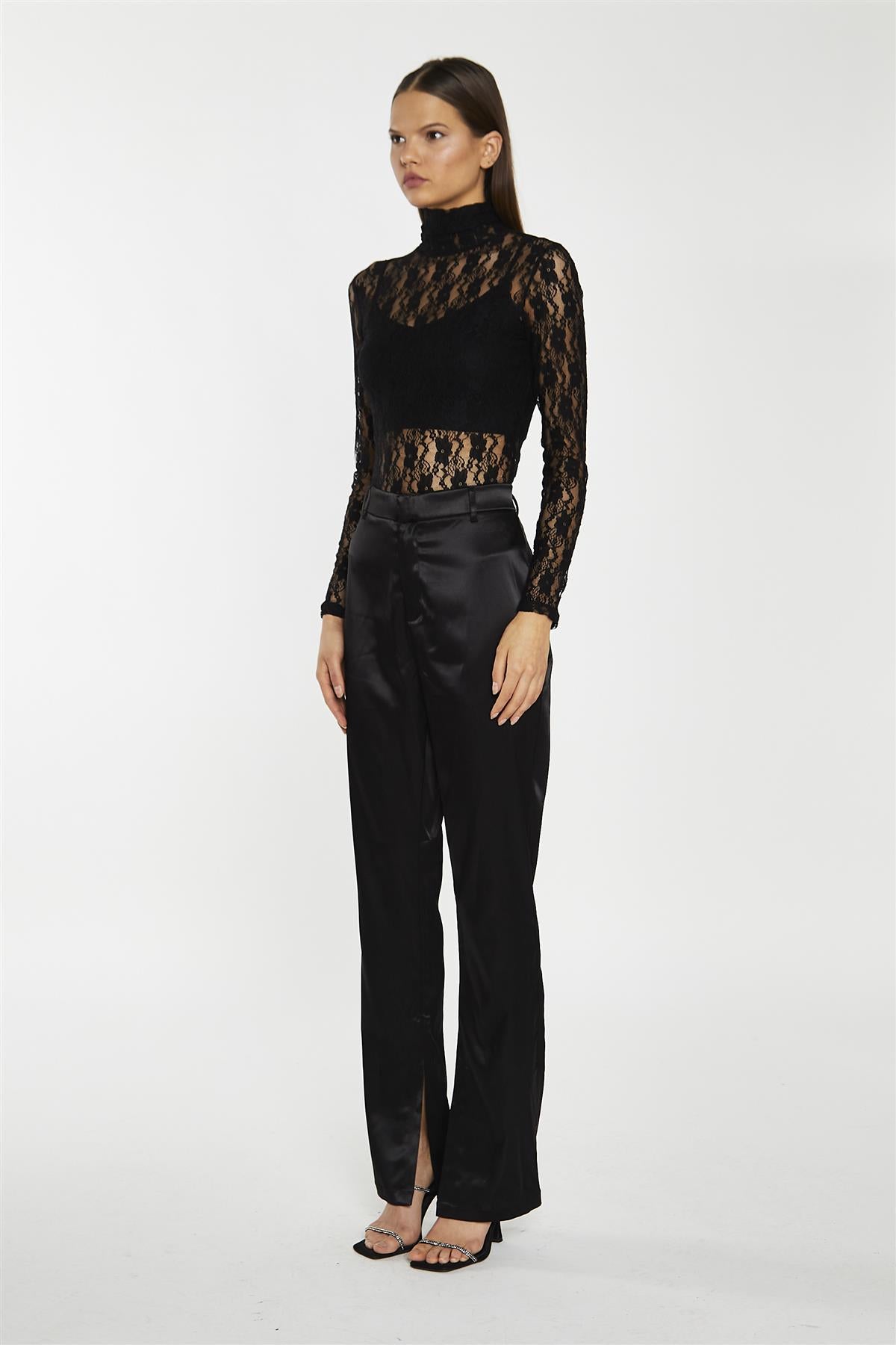 Black-Lace High-Neck Bodysuit