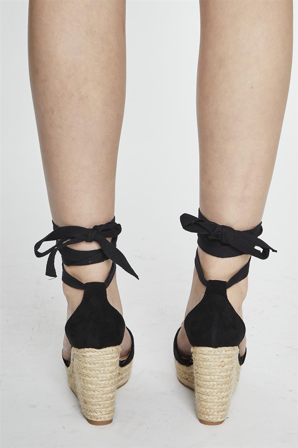 Black Lace Up Espadrille Wedges