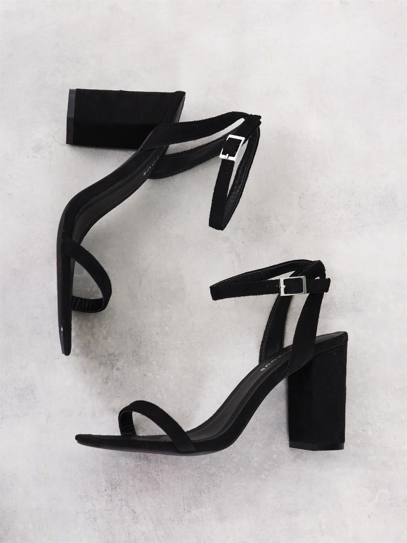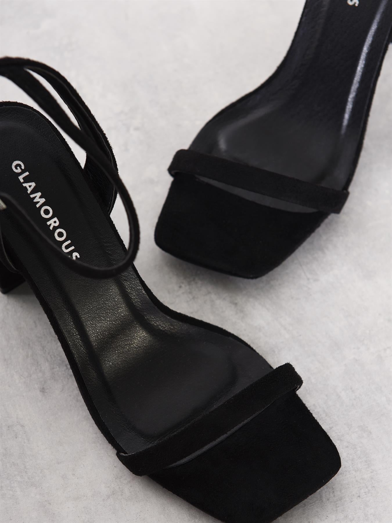 Glamorous Women's Black-Micro Thin-Strap High-Heels. These black thin strap high-heels are the perfect blend of elegance and modern style. The sleek micro fibre outer gives them a luxurious look that catches the eye without being too flashy. The thin straps add a delicate touch, wrapping gracefully around your feet for a secure fit that's also visually appealing. The high block heel offers stability and comfort, so you can strut your stuff with confidence all day or night. These versatile heels are a great choice for dressing up your favourite jeans or complementing that little black dress you've been saving for a special occasion. They're the kind of shoes that make you feel put-together and chic, without trying too hard. Plus, the timeless black colour means they'll be a go-to in your wardrobe for seasons to come. With these stunners on your feet, you'll be ready to take on whatever the day (or night) throws your way..