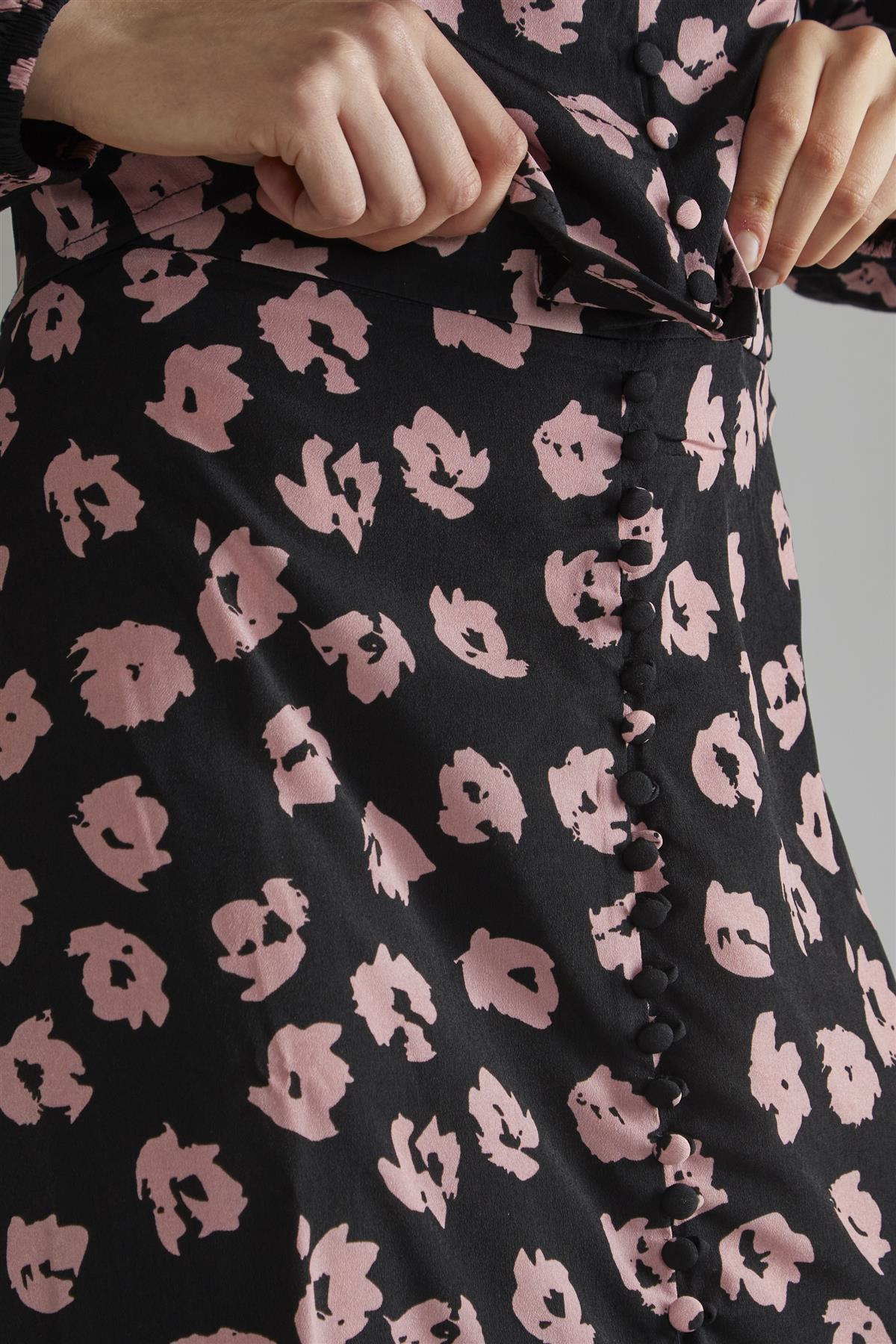 Glamorous Women's Black-Pink Splodge Button-Front Midi-Skirt. This midi-skirt is a fun and flirty addition to your wardrobe. The button-front design gives it a casual, laid-back vibe, while the center split adds a touch of playfulness. The black base is splashed with bold pink splotches, creating a unique and eye-catching pattern. Whether you pair it with a simple tee and sneakers or dress it up with a blouse and heels, this skirt is sure to turn heads. It's the perfect blend of style and comfort, making it a versatile choice for any occasion. Go ahead, embrace your inner fashionista and give this skirt a try!