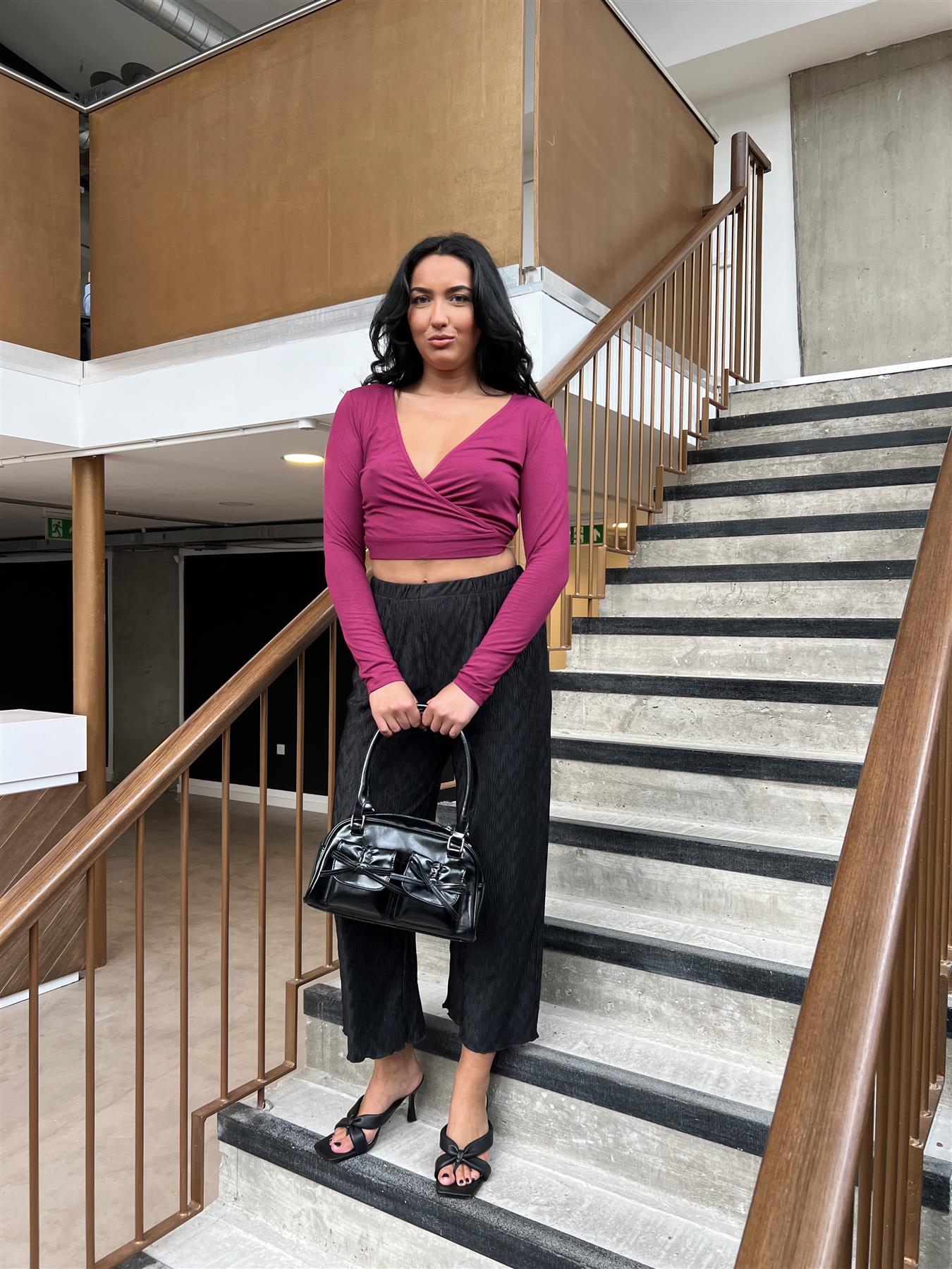 Glamorous Women's Black-Plisse High-Waisted Midi-Trouser. The Black Plisse High Waisted Midi Trousers are a stylish and comfortable choice for any occasion. With a flattering high waist, these trousers offer a great fit that highlights your silhouette while providing all-day comfort. The unique plisse texture adds a touch of sophistication, making them perfect for both casual outings and dressier events. Available in multiple print styles, you can easily find the perfect pair to match your personal style. The midi length is versatile and pairs wonderfully with everything from fitted tops to oversized sweaters. Wear them with heels for a polished look or keep it casual with sneakers. These trousers are designed to make you feel confident and chic, no matter where you go.