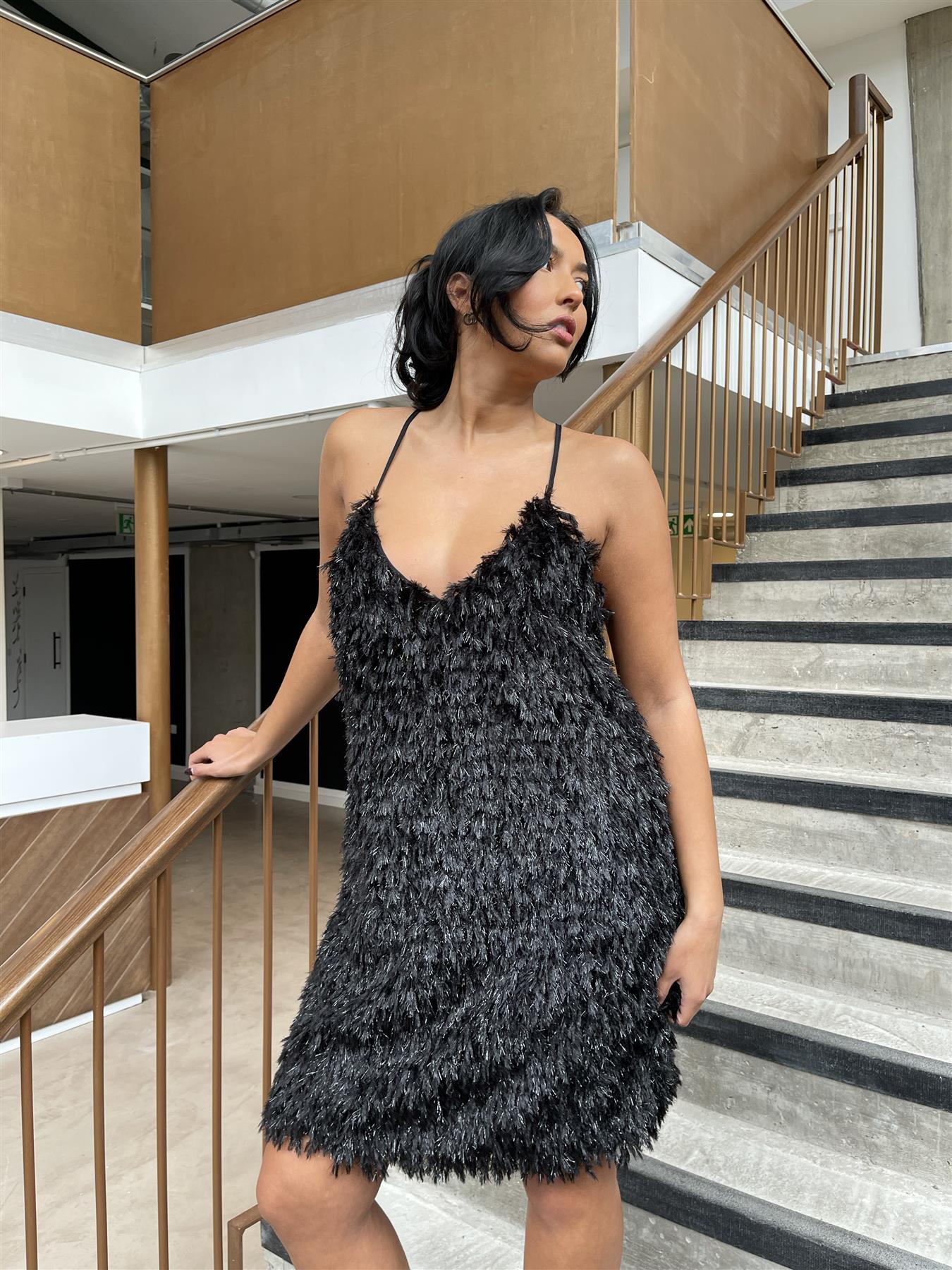 Glamorous Women's Black Plunge Midi-Dress. Feel effortlessly chic in our Black Plunge Midi-Dress, designed to keep your look simple yet striking. With its plunge front, this dress offers a bold yet elegant neckline, balanced by delicate spaghetti straps for a minimal, sleek feel. The midi length gives it a timeless silhouette, perfect for everything from dinner dates to special events. Its versatile style makes it easy to dress up with heels and statement accessories, or keep it more laid-back with a cozy cardigan and flats. This dress is your go-to for an understated yet confident look, bringing together comfort and style with ease.