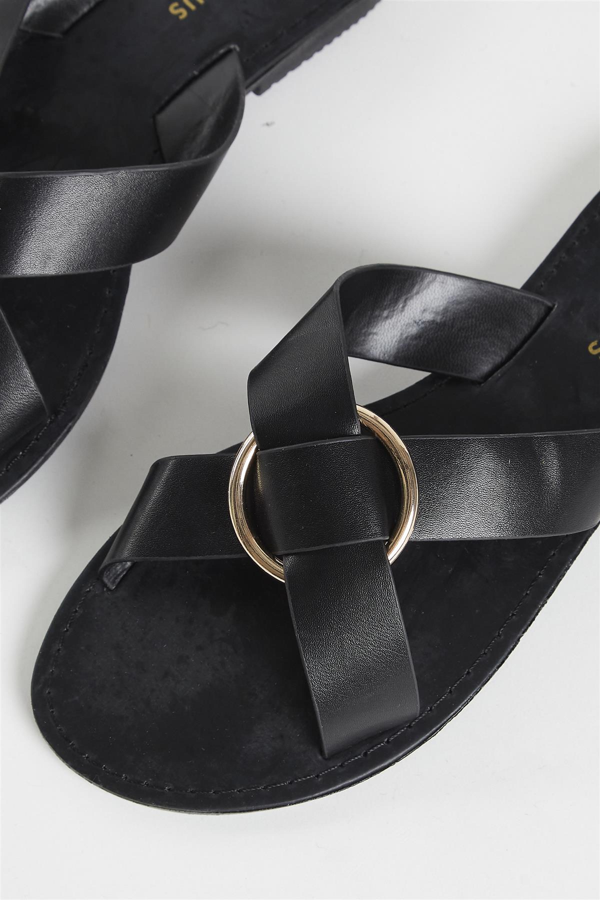 Glamorous Women's Black PU Flat Sandals -Flat Sandals. Jump into summer with these stylish Tan Flat Sandals! With a flat sole and convenient slip on style, you can enjoy effortless, all-day comfort. The criss-cross design and open toe provide a trendy look that's sure to keep heads turning!