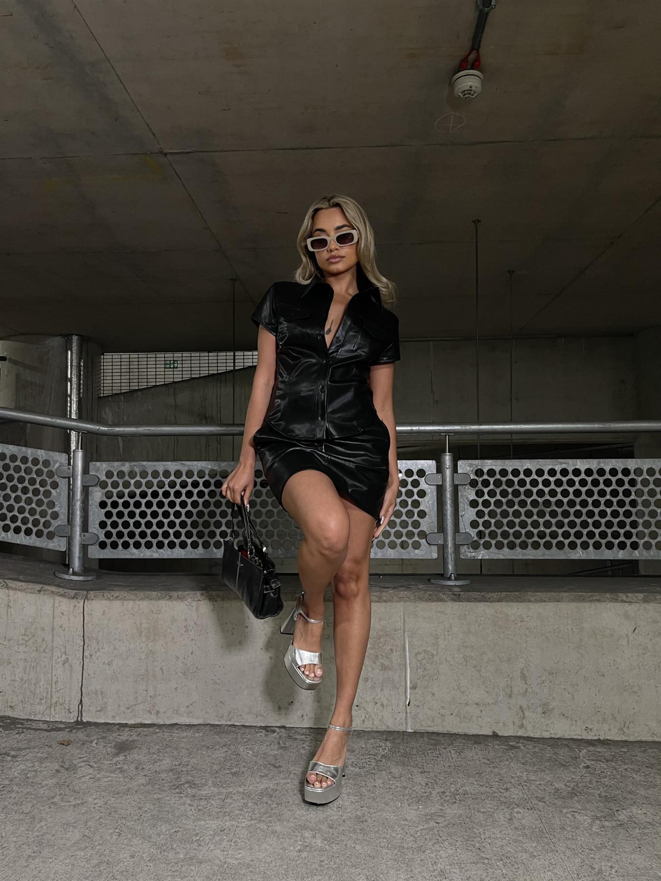 Glamorous Studio Womens Black Pu Mini-Skirt. Unleash your wild side with our black PU mini skirt! Made with faux leather, its perfect for a night out or a day at the office. Rock this mini skirt with confidence and show off your fierce fashion sense. A super versatile piece, you can style this skirt with pretty much anything! But for a super sleek look, pair it with the matching top!
