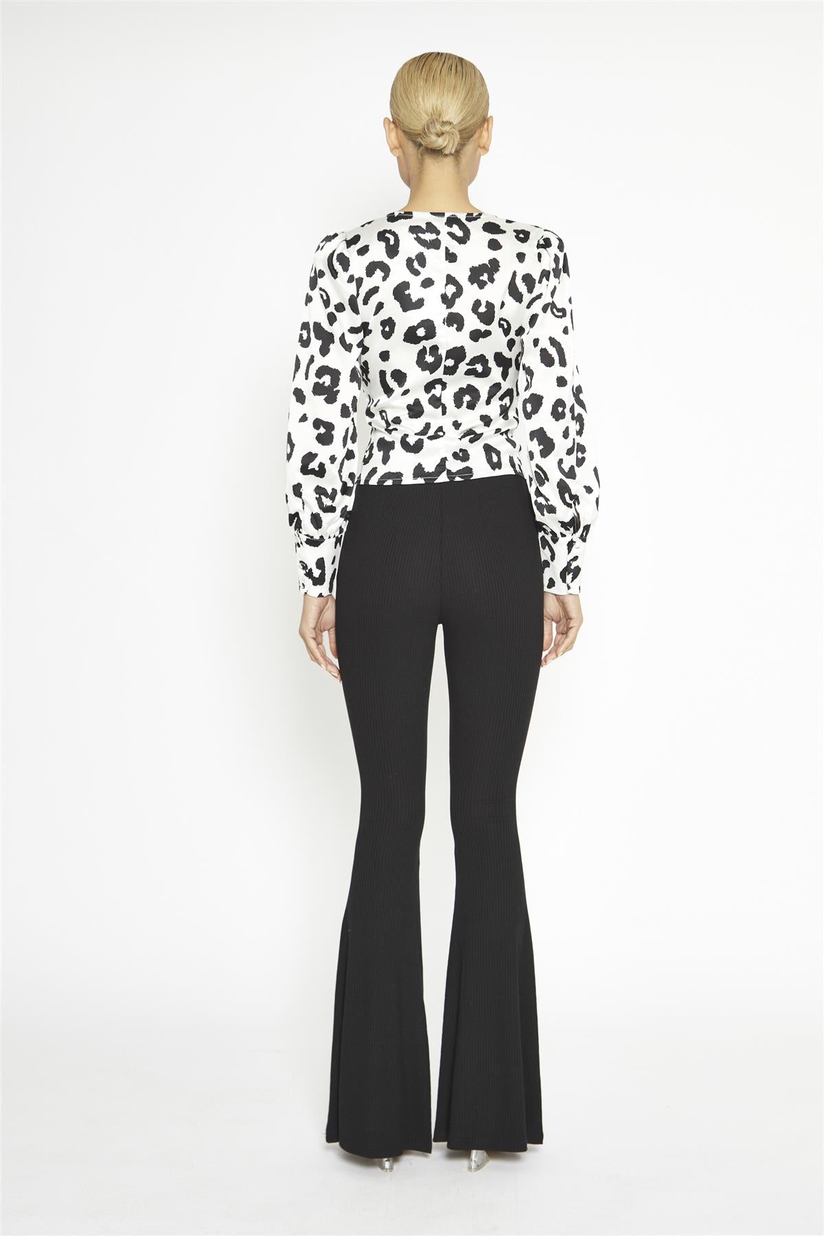 Glamorous Women's Black-Rib High-Waisted Flared-Trousers. Meet your new favourite pair of leggings – these black ribbed beauties are about to become your go-to for comfort and style. The high-waisted design hugs your curves in all the right places, giving you a sleek silhouette that's both flattering and comfortable. The ribbed texture adds a touch of interest and helps smooth out your look. But the real star of the show is the flared leg, which brings a fun, retro vibe to these leggings. They're perfect for adding a bit of drama to your everyday outfits. Pair them with a cropped tee for a casual look, or dress them up with a flowy blouse for a night out. The stretchy fabric moves with you, making these leggings ideal for everything from yoga class to running errands. They're versatile enough to wear year-round – just add layers in cooler weather. These black rib flared leggings are like a hug for your legs, combining the comfort of your favourite loungewear with the style of your best going-out pants.