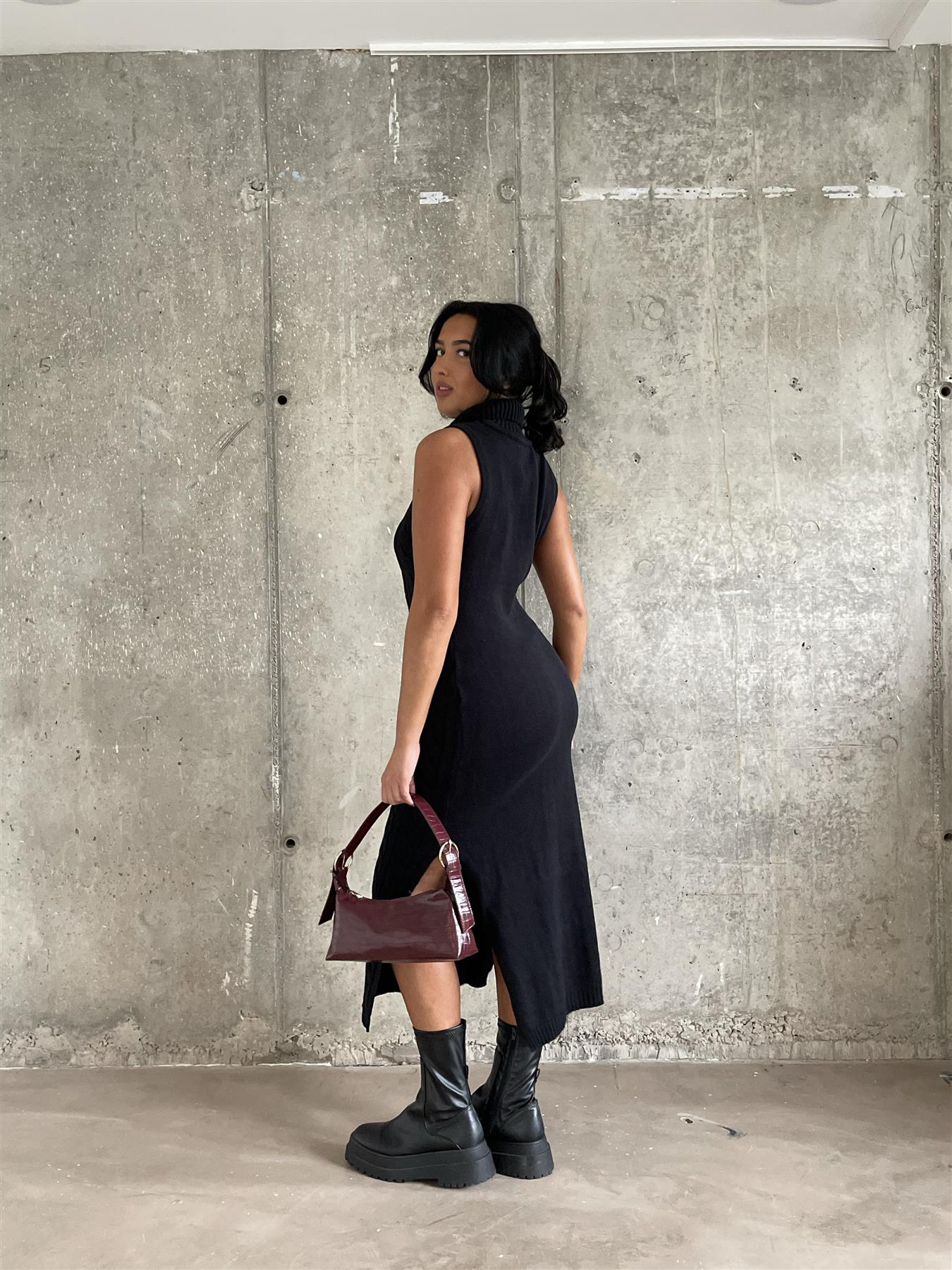 Glamorous Women's Black Roll-Neck Midi-Dress. The Black Roll Neck Midi Dress offers a sleek and timeless look that's easy to wear and style. With its sleeveless design and cozy roll neck, this dress is both comfortable and chic, perfect for layering during cooler months or wearing on its own for a minimalist look. The midi length provides just the right amount of coverage, while the black colour makes it a versatile staple in your wardrobe. Pair it with a jacket or cardigan for a laid-back vibe, or dress it up with statement jewellery for a more polished appearance. This dress combines simplicity and sophistication, making it an effortless go-to for any occasion.