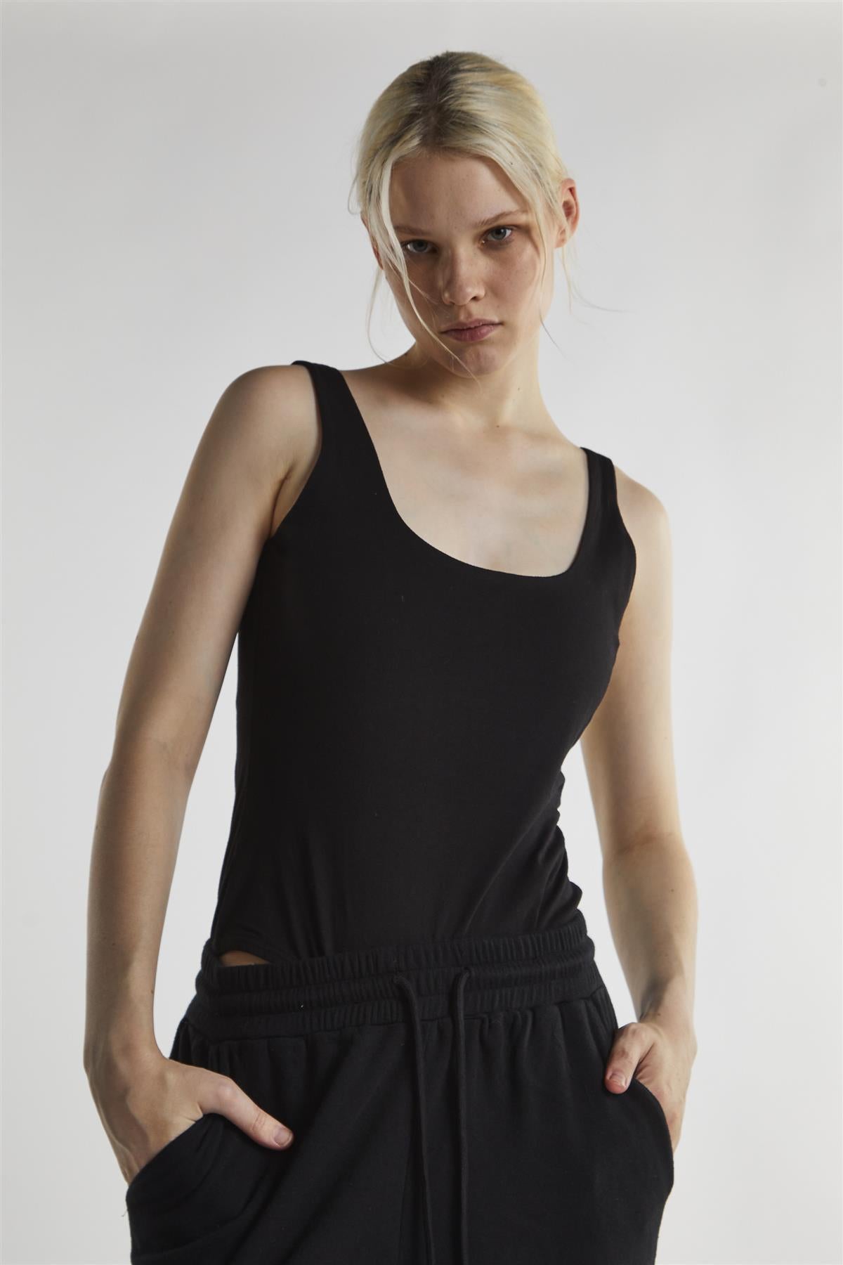 Glamorous Women's Black Scoop Neck Bodysuit. This sleek bodysuit is an essential piece for any wardrobe, offering a versatile and stylish option for various occasions. The scoop neck design adds a touch of elegance while keeping things effortlessly casual. With its sleeveless style, this bodysuit is perfect for warm days or as a layering piece under jackets and cardigans when the temperature drops. The bodycon fit hugs your curves beautifully, creating a flattering silhouette that pairs well with everything from high-waisted jeans to skirts. Dress it up with statement accessories and heels for a night out, or keep it simple with shorts and sandals for a relaxed weekend look. This bodysuit is designed to be both comfortable and chic, making it a go-to choice for those days when you want to feel confident and put together. Its timeless design ensures that it will remain a staple in your collection, ready to be styled in countless ways to suit your mood and the occasion.