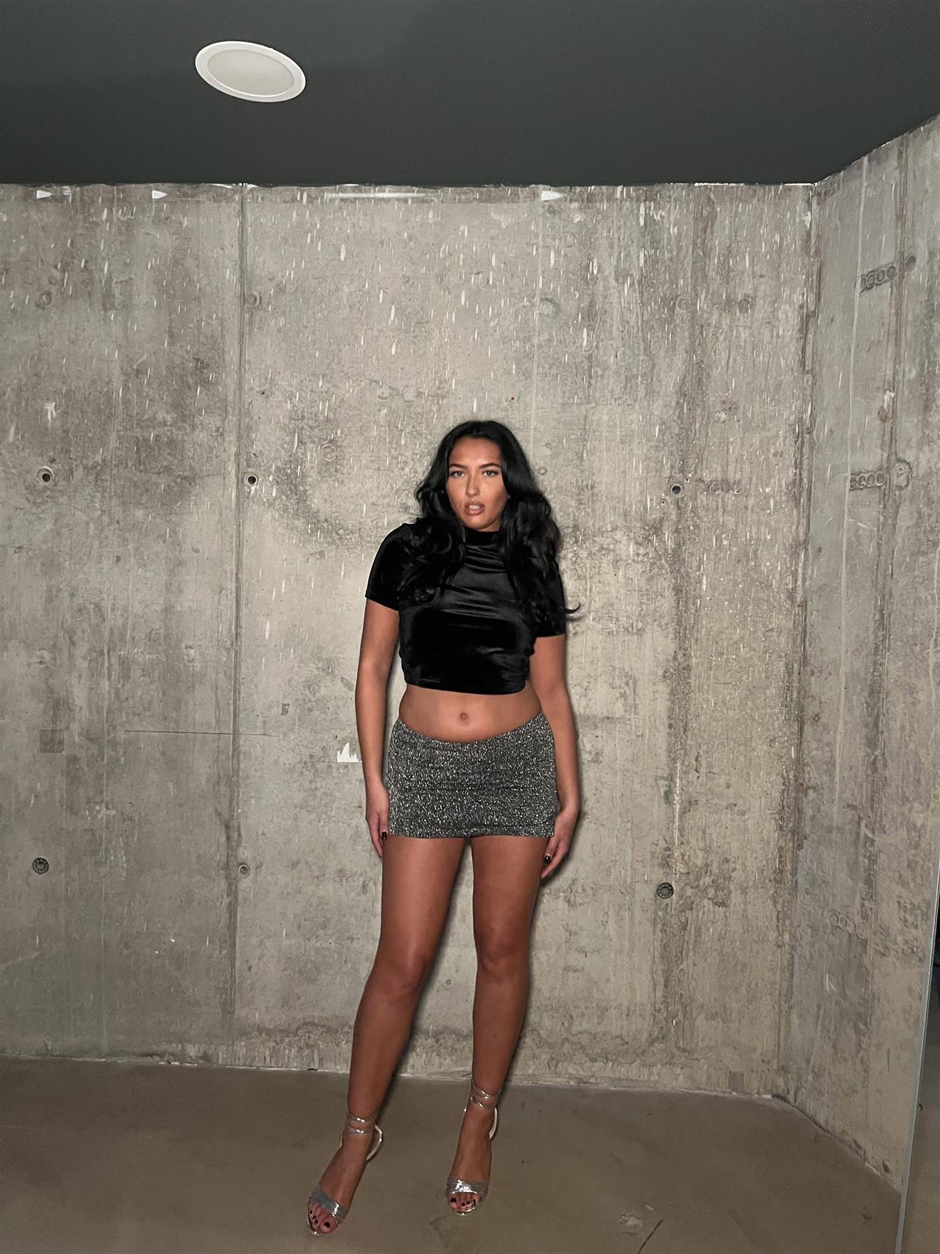 Glamorous Women's Black-Silver Mini-Skirt. This Black-Silver Mini-Skirt brings a little sparkle and a lot of style to your wardrobe. Its mini length gives it a fun, playful vibe that works great for nights out or when you just want to add some shine to your day. The mix of black and silver adds a touch of glam without being too flashy. Pair it with a sleek black top and boots for a night out, or go casual with a soft sweater and sneakers for a more laid-back look. A versatile piece that’s as easy to wear as it is to style.