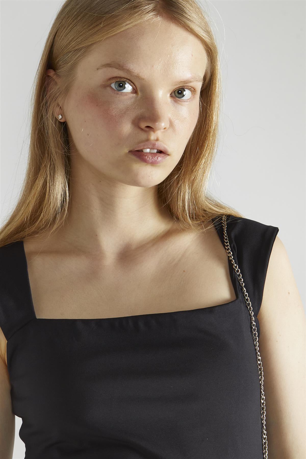 Glamorous Women's Black Square-Neck Top. Add a dash of chic simplicity to your wardrobe with our Black Square-Neck Top. This versatile piece brings a modern twist to the classic black top, featuring a flattering square neckline that frames your collarbone beautifully. The self-lined design ensures a smooth, polished look while providing an extra layer of comfort against your skin. It's the kind of top that effortlessly transitions from day to night, making it a true wardrobe workhorse. Pair it with your favourite jeans for a casual coffee date, or dress it up with a sleek skirt for an evening out. The timeless black colour means it'll play nice with just about everything in your closet. This top isn't just clothing; it's a canvas for your personal style, ready to be accessorized or left elegantly simple. It's the perfect solution for those "I have nothing to wear" moments, always there to make you look put-together with minimal effort..