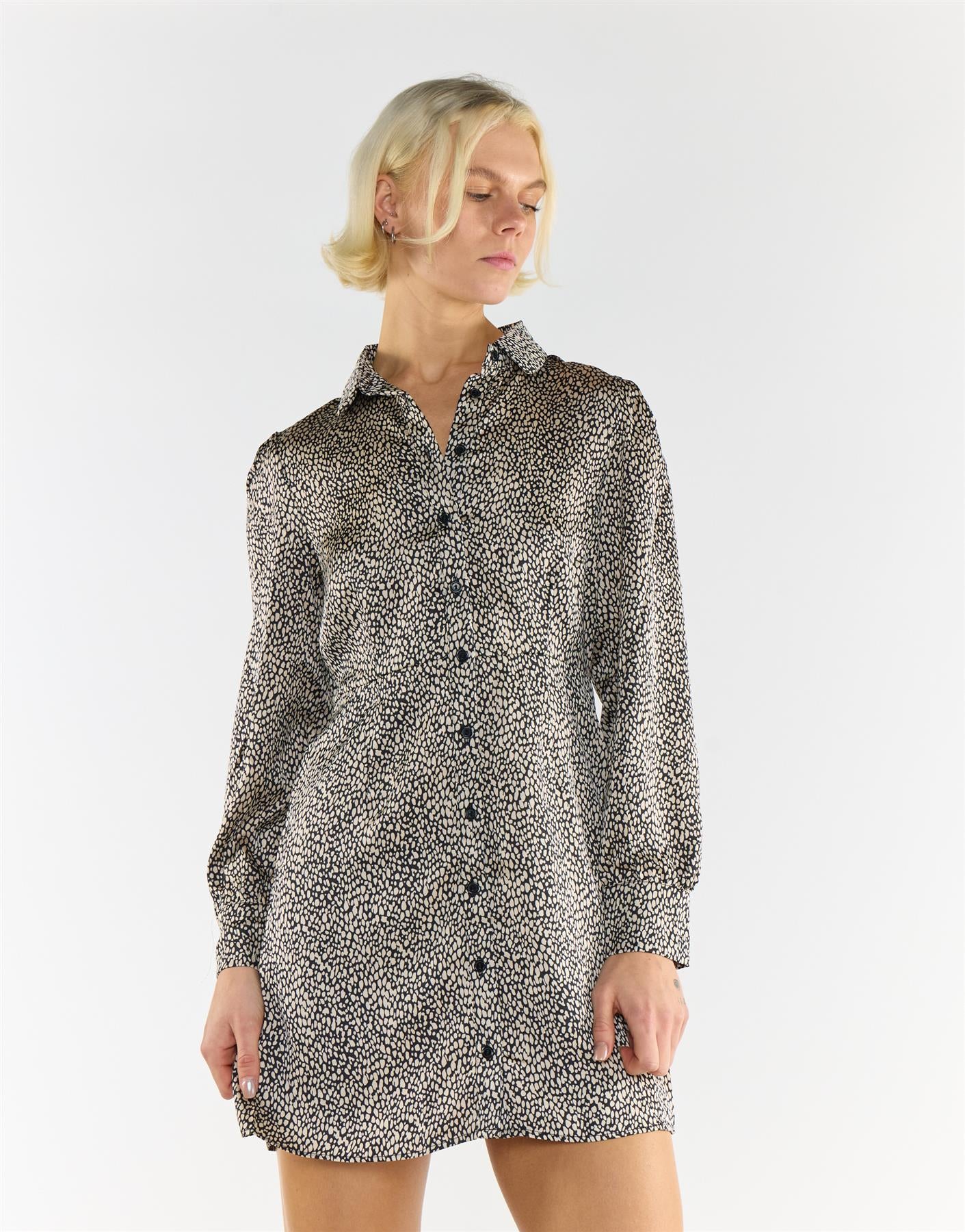 Glamorous Women's Black Stone Spot Print Shirt Dress. Step into easy sophistication with this spot print shirt dress that brings together classic tailoring and modern charm. Designed with a neat collared neckline, it offers a polished touch that feels effortlessly put together. The plain style keeps it versatile and easy to pair, while its chic silhouette flatters with minimal effort. Perfect for those moments when you want to look refined yet relaxed, this dress lets you move confidently through your day. Style it with your favourite accessories for a look that feels timeless, simple, and beautifully balanced.