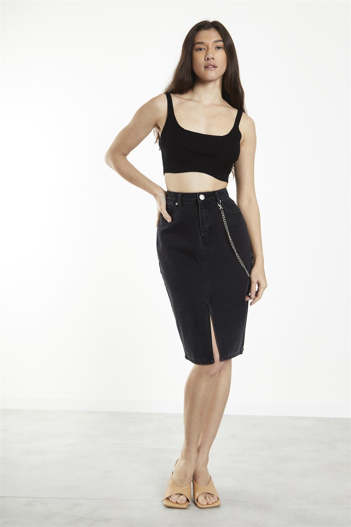 Black Straight Pencil Midi-Skirt