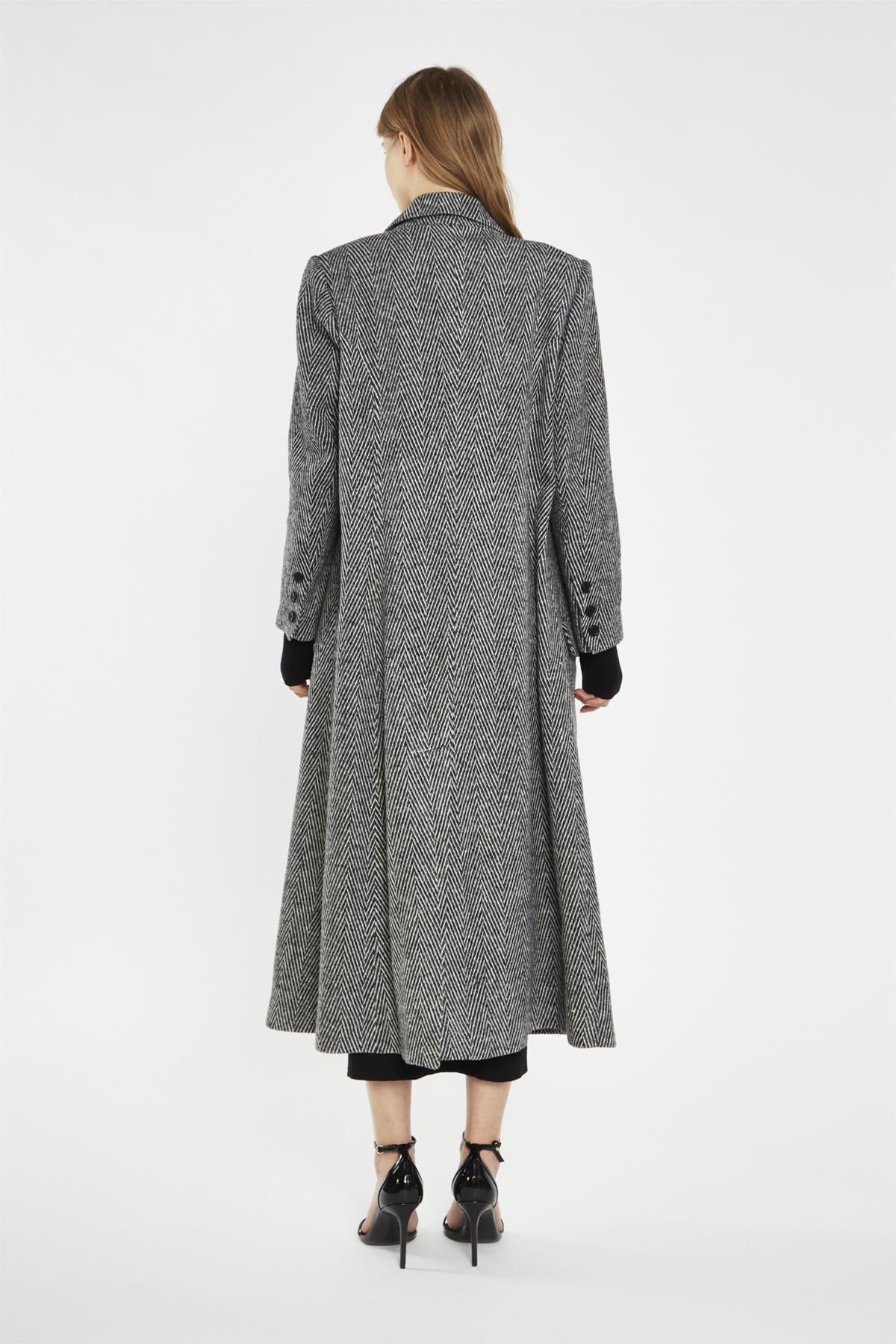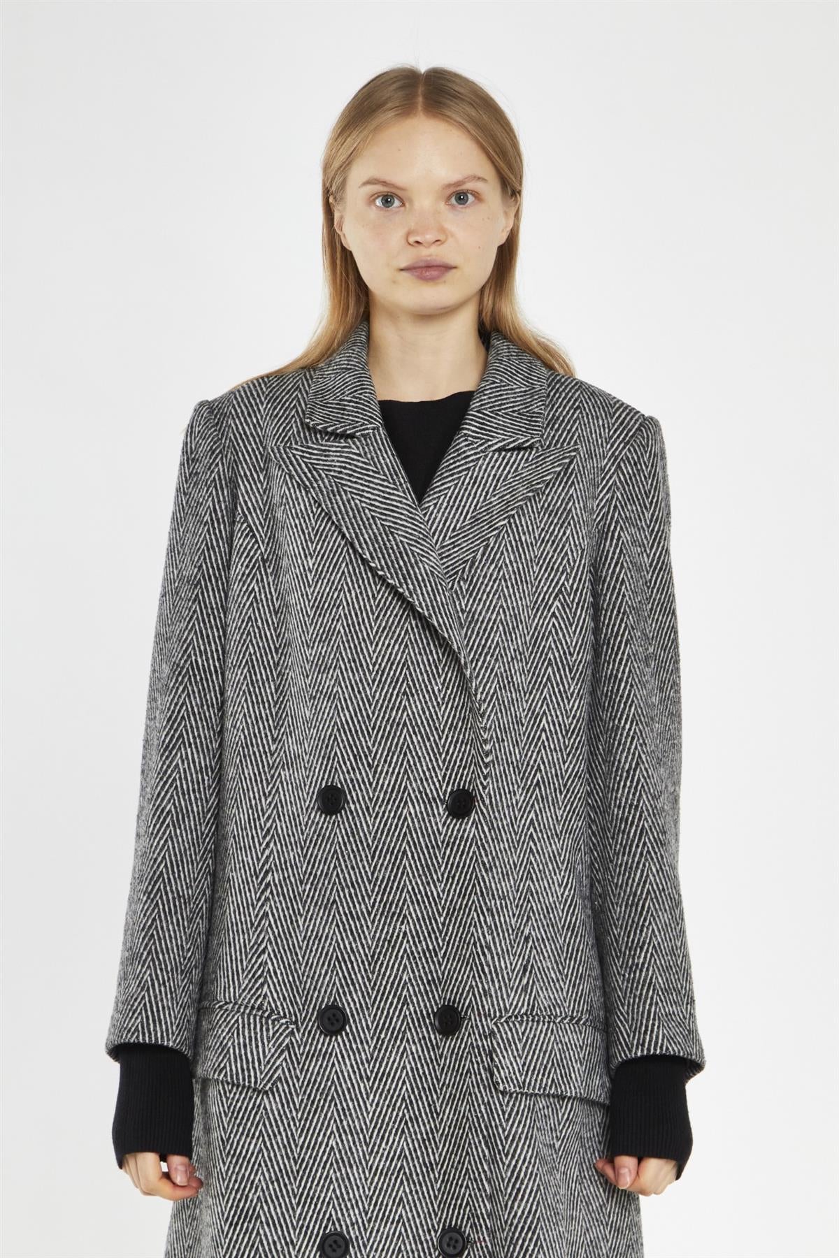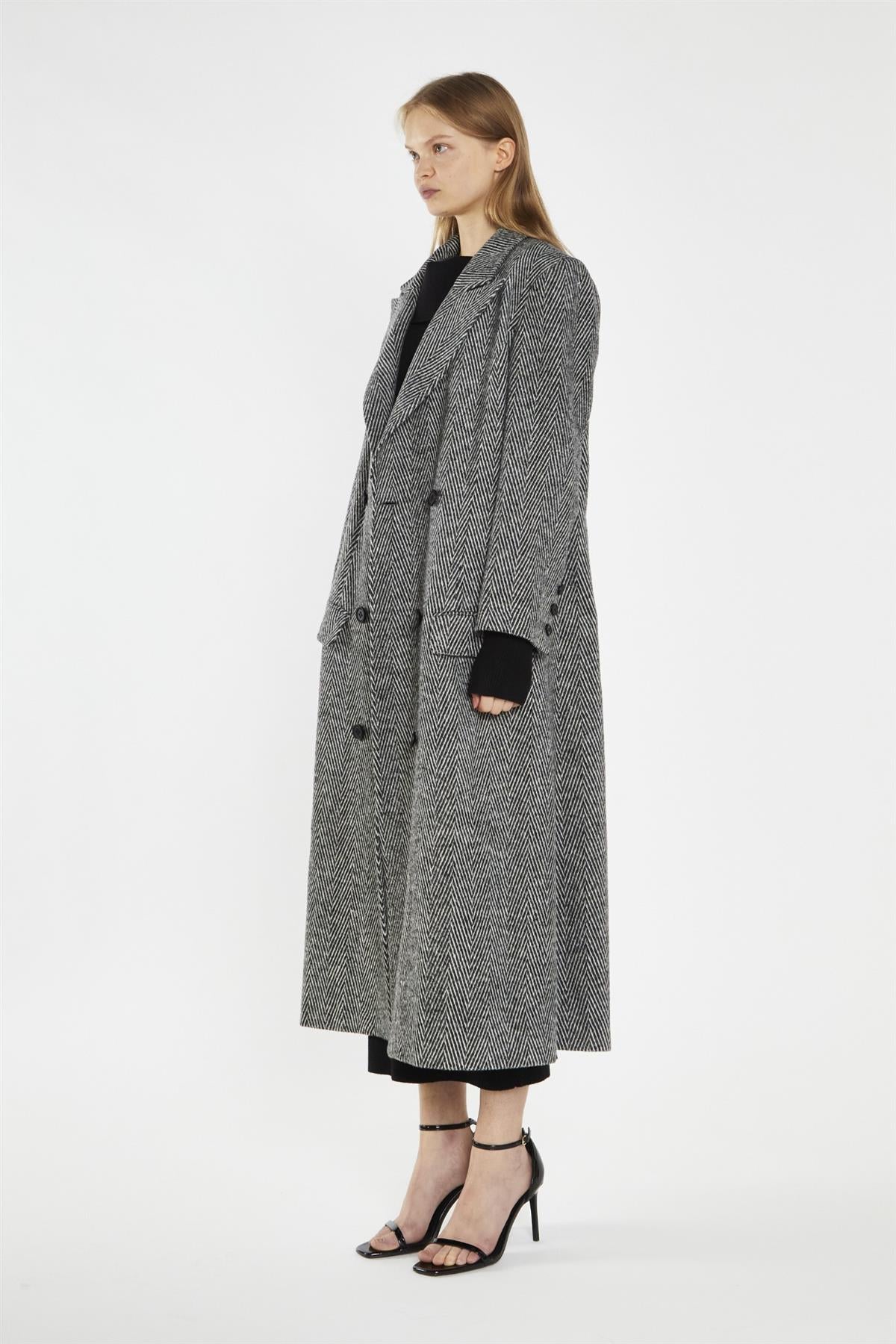 Glamorous Women's Black-White Chevron Double-Breasted Oversized-Coat. Introducing the Black-White Chevron Double-Breasted Oversized Coat - your new best friend for easy-going elegance. This coat's double-breasted design adds a touch of sophistication to your look, while the oversized fit and longline length create a cozy, relaxed silhouette. With its chevron pattern, this coat brings a unique twist to your wardrobe, making you stand out from the crowd. The pockets are perfect for stashing your essentials, and the fully lined interior ensures you stay warm and comfortable all day long. Whether you're heading to the office or out for a weekend adventure, this versatile coat will have you feeling confident and stylish in any setting.