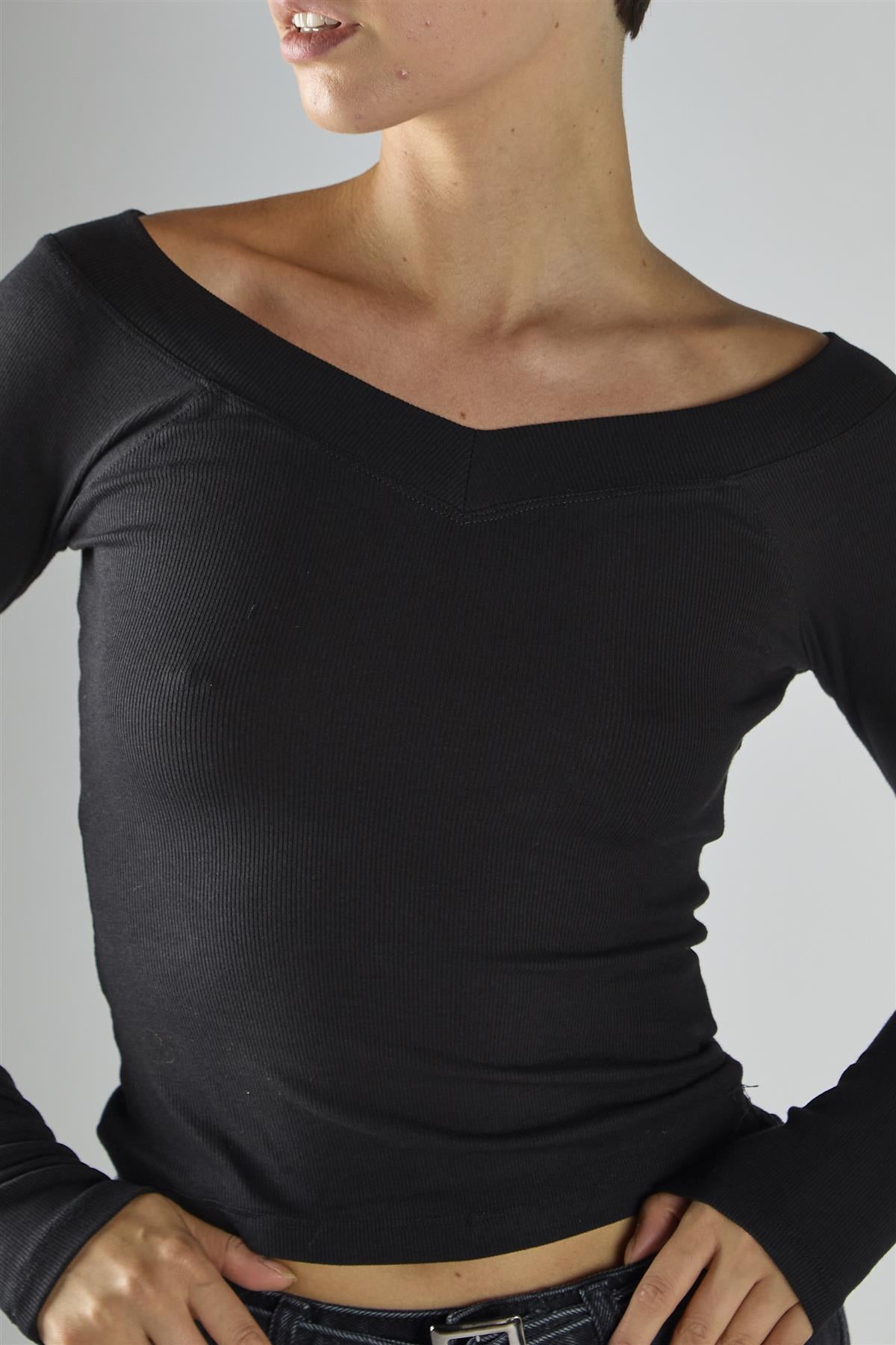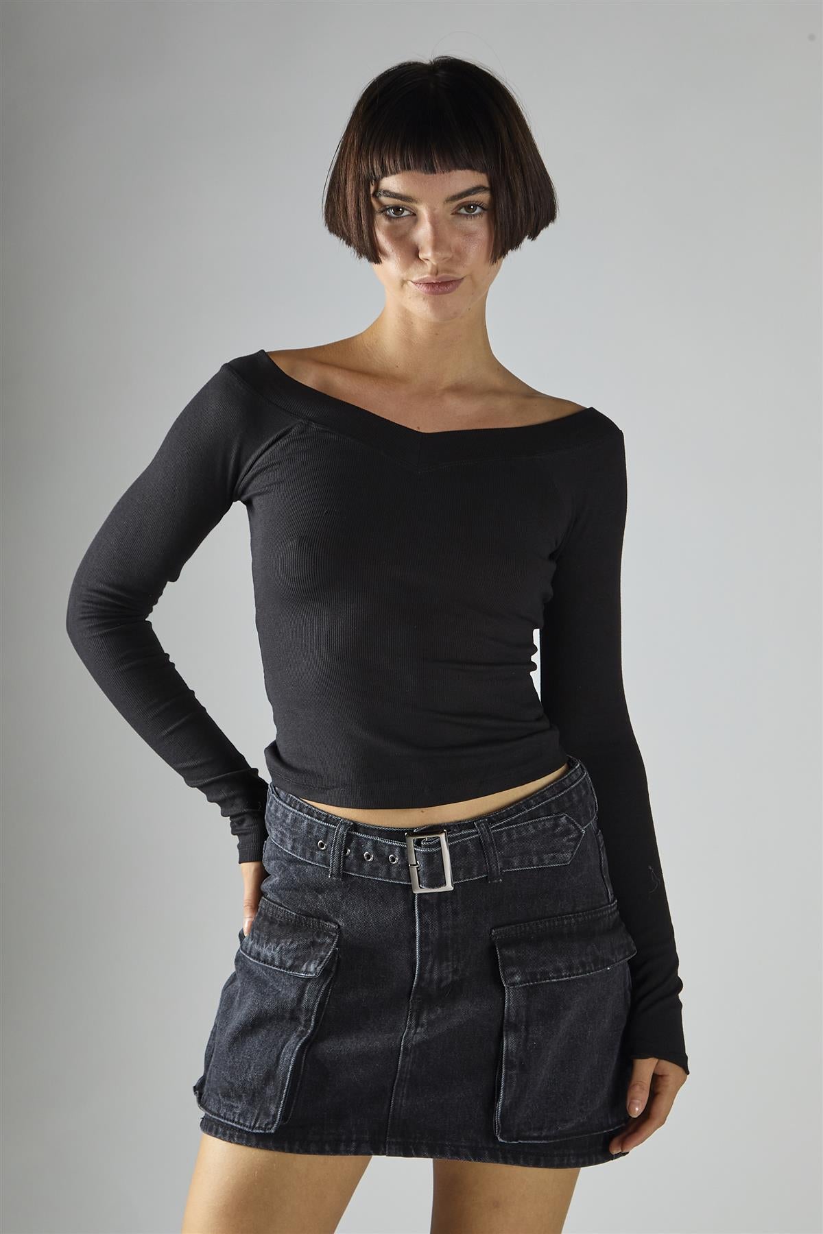 This Wide V-neck Ribbed Long Sleeve Top strikes the perfect balance between comfort and shape. The neckline adds a relaxed feel while the ribbed fabric keeps the fit flattering and snug. Easy to style and effortlessly versatile, it’s the piece you’ll reach for when you want something simple with a little extra polish. Pair it with a denim skirt for a laid-back look or joggers for casual ease.