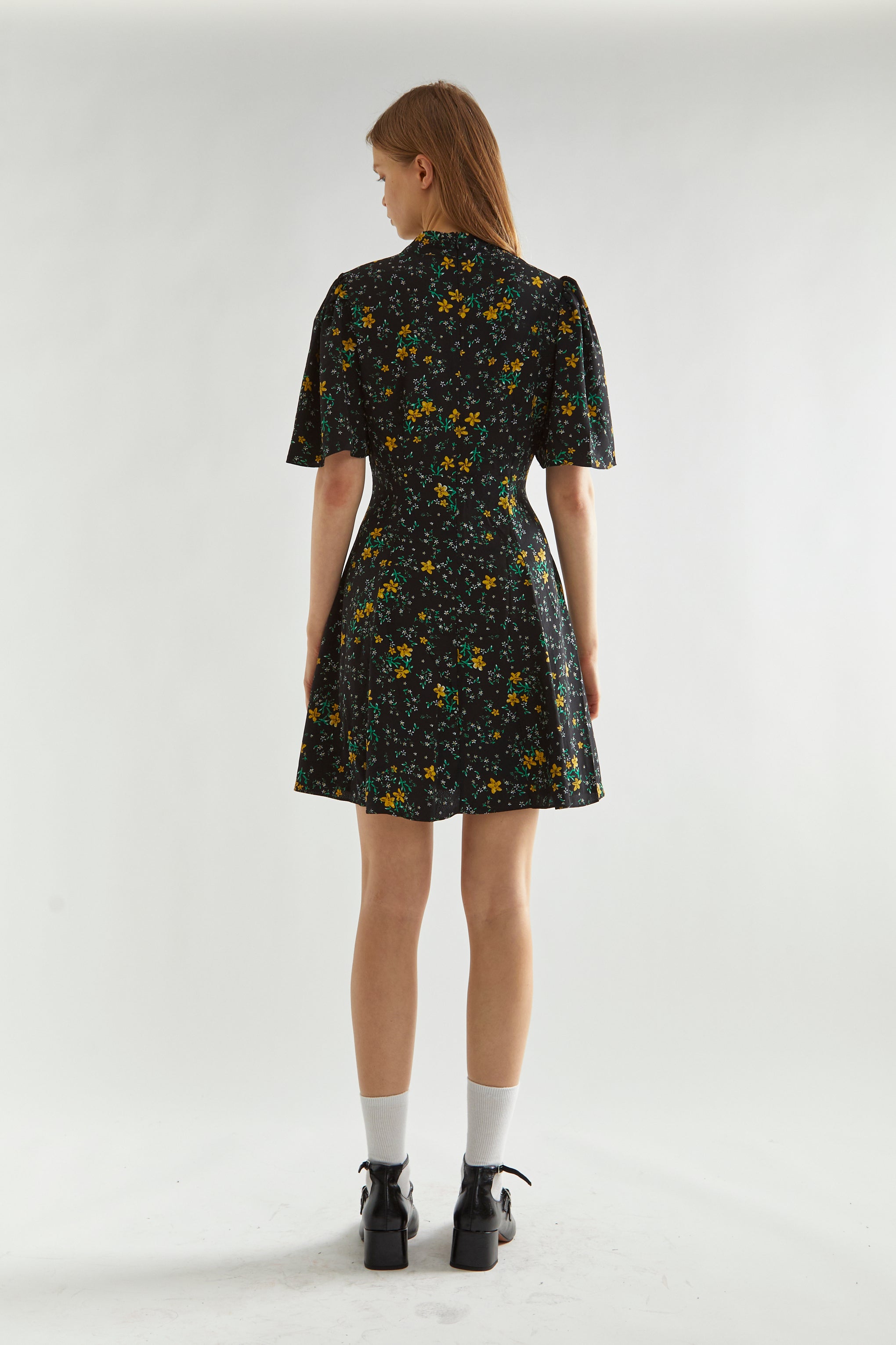 Glamorous Women's Black-Yellow Mini Floral High-Neck Mini Tea-Dress. Functional fashion that makes a statement - this tea-dress has got it all! From the high neckline and keyhole detail for an effortlessly sophisticated look, to the angel sleeves that add a touch of class and the fitted waist that flatters your figure - you'll be stealing the show. And with its mini length, you'll be turning heads wherever you go. It's the perfect blend of style and comfort, boasting a chic high neckline and elegant keyhole detailing.