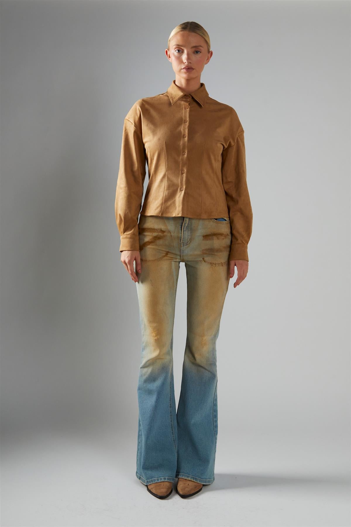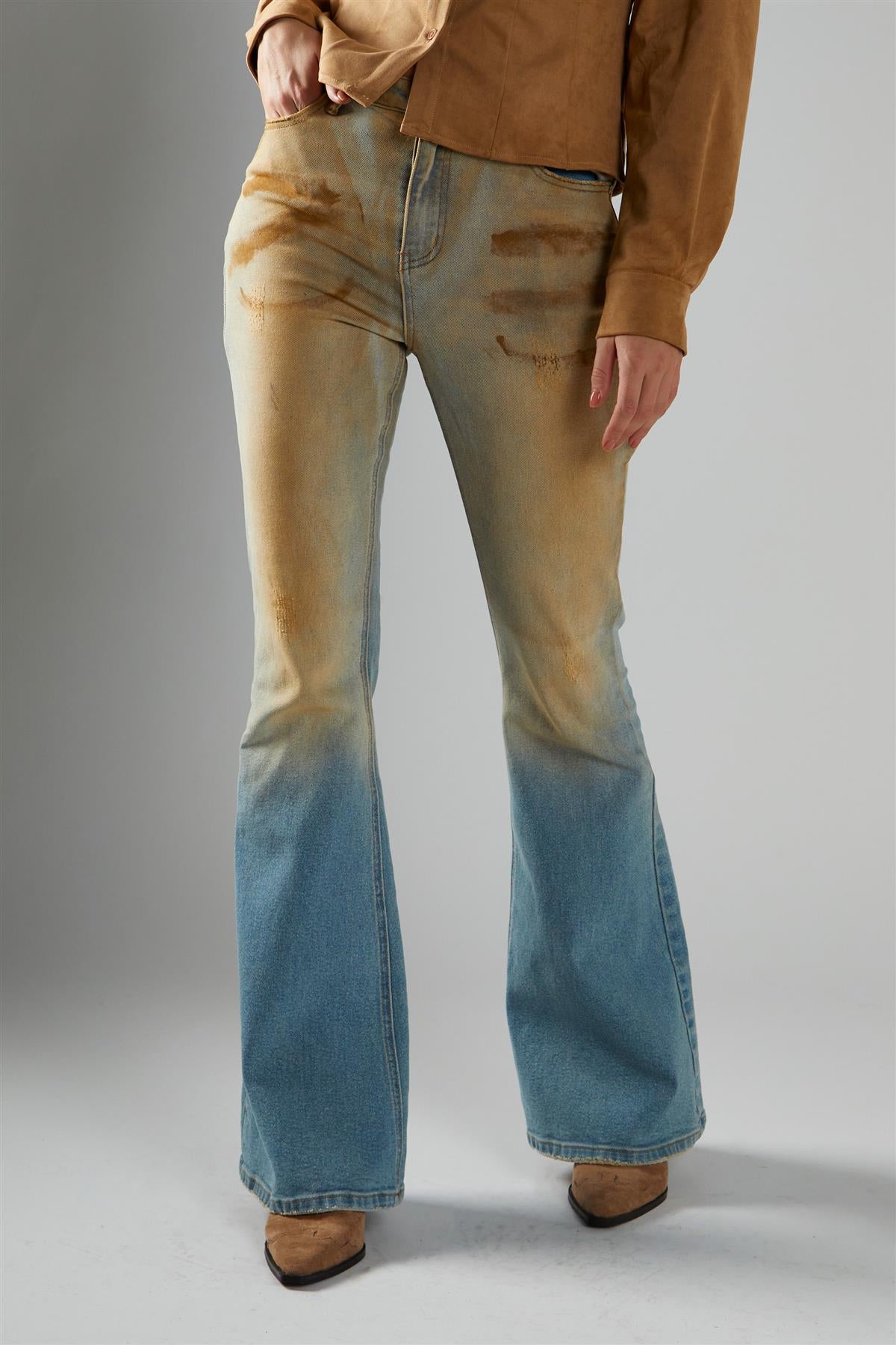 Glamorous Women's Blue-Mud-Wash Flared Jeans. These flared jeans bring a fresh spin to classic denim, thanks to their blue mud wash finish that gives just the right amount of character. The flared silhouette adds a playful touch, gently widening from the knee down to create a sense of movement with every step. The denim feels sturdy but not stiff, making these jeans comfortable for long days out or quiet afternoons at home. Their easy-going style pairs well with just about anything—try them with a fitted tee for a simple look, or layer on a chunky knit when the weather cools. The unique wash adds a bit of personality, making these jeans a friendly option for anyone looking to add a relaxed, vintage-inspired edge to their wardrobe. With their blend of comfort and style, these jeans are ready to become a go-to favourite for all sorts of plans.