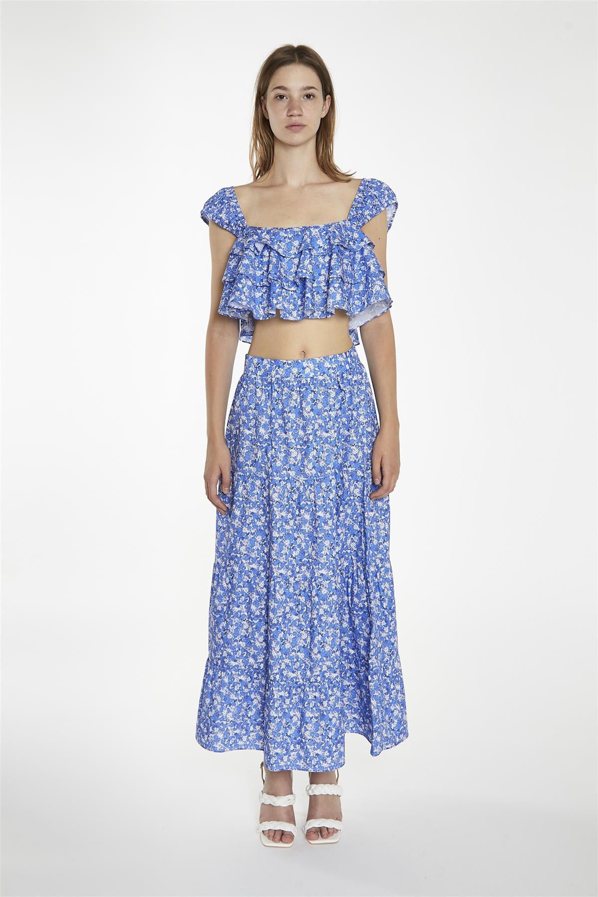 Glamorous Women's Blue-Watercolour Floral Ruffle Crop-Tops. Dive into summer with our Blue-Watercolour Floral Ruffle Crop-Tops, a fresh take on warm-weather style. These breezy tops feature a dreamy blue watercolour floral print that captures the essence of a sun-dappled garden. The playful tiered ruffles add movement and charm, creating a flattering silhouette that's perfect for beach days or casual outings. Cut to a cropped length, these tops hit just right to show off your favourite high-waisted bottoms. The light, airy fabric keeps you cool on the hottest days, while the delicate floral pattern brings a touch of romance to your look. Pair with denim shorts for a laid-back vibe, or dress it up with a flowing maxi skirt for evening strolls. These versatile crop-tops are sure to become a go-to in your summer wardrobe, offering both comfort and style in one effortless piece..