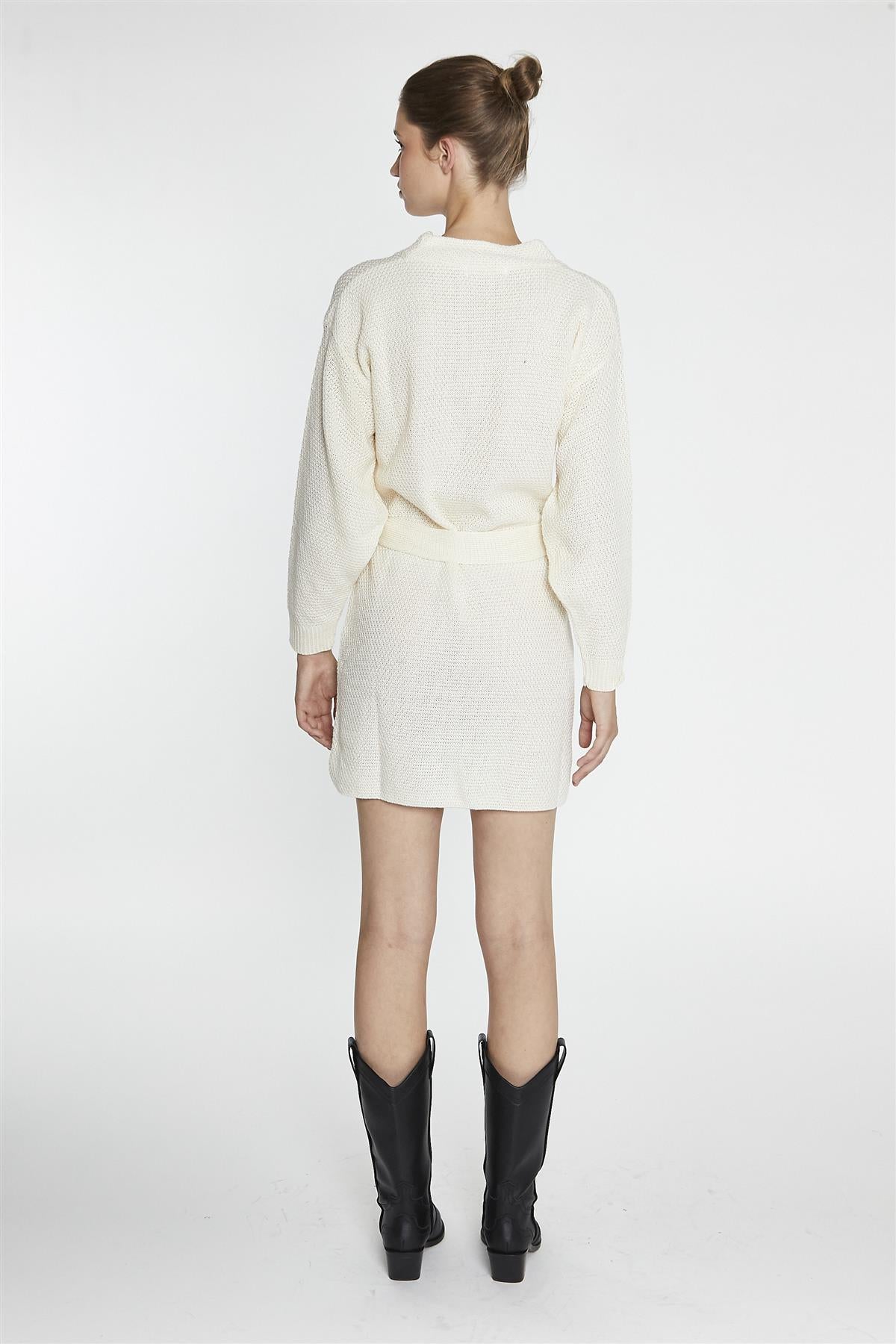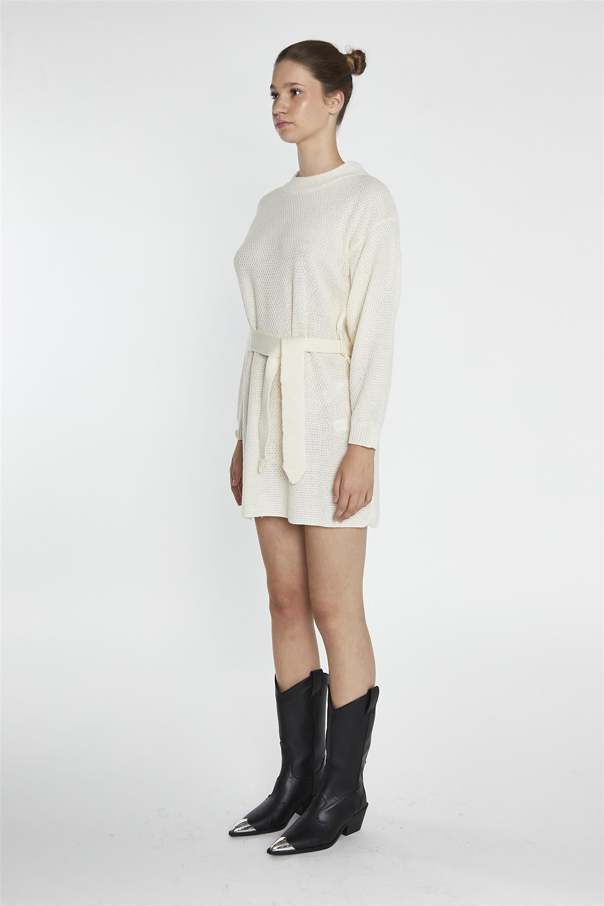 Glamorous Women's Bone Jumper Mini-Dress. Stay cozy and stylish with this bone coloured jumper mini-dress, perfect for those days when you want to look effortlessly chic. The classic crew neck and long sleeves provide warmth and comfort, making it a great choice for cooler weather. Crafted from soft knitted fabric, this dress feels great against your skin while offering a relaxed fit that flatters your figure. The included waist belt allows you to cinch in your waist, adding shape and definition to the silhouette. Pair it with knee-high boots for a trendy look, or style it with ankle booties for a more casual vibe. This versatile mini-dress is ideal for brunch with friends, a casual day out, or even a cozy night in. With its timeless design and comfortable fit, you’ll find yourself reaching for this piece again and again, making it a staple in your wardrobe. Enjoy the perfect blend of style and comfort every time you wear it!
