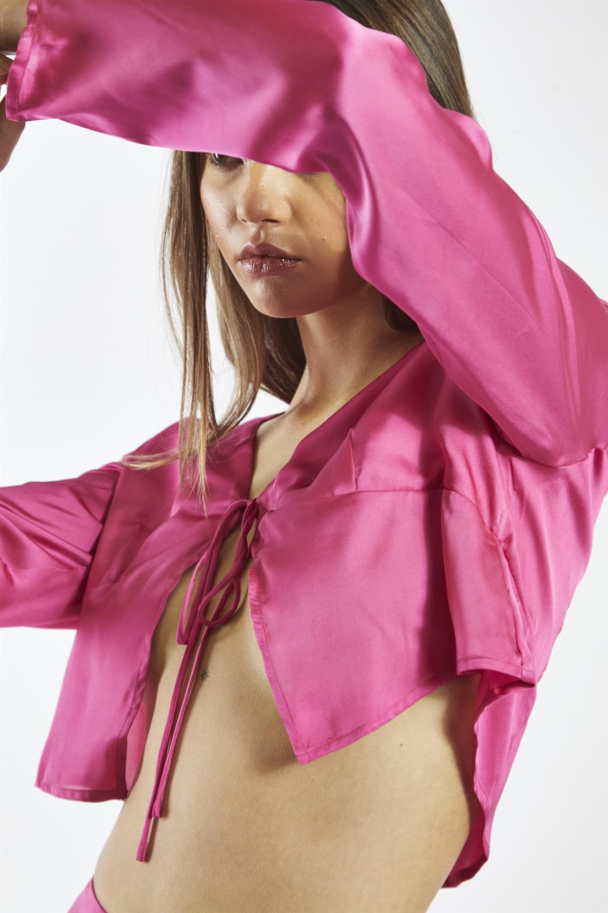 Bright-Pink Tie-Front Crop-Top