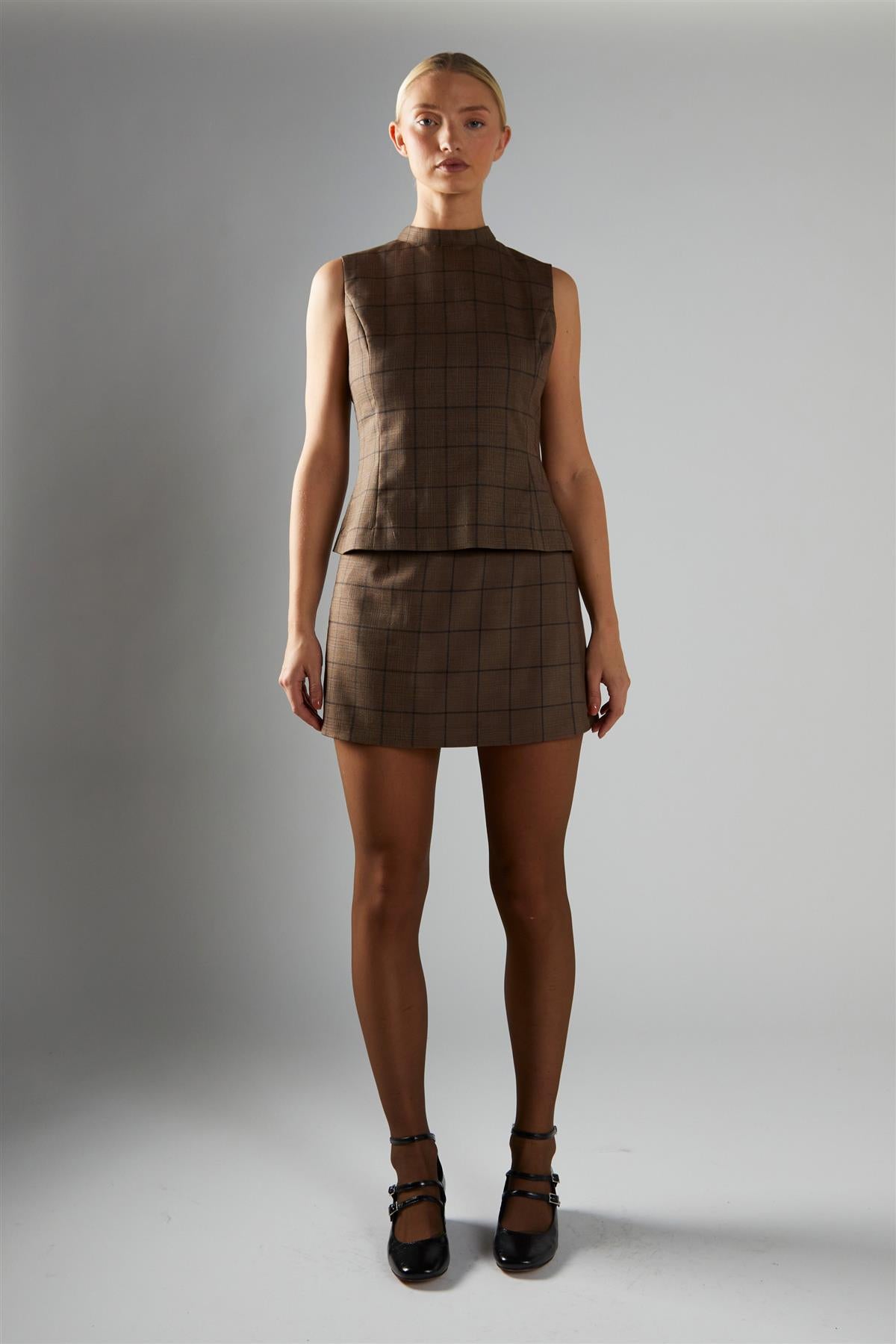 Glamorous Women's Brown-Check Bow-Back Top. This sleeveless top brings a fresh twist to classic checks, offering a fitted shape that feels modern and easy-going. The high neckline gives a clean, polished finish, while the standout bow tie at the back adds a playful detail that’s sure to catch the eye as you move. Designed to sit close without feeling restrictive, the fabric follows your shape and keeps you comfortable from morning through evening. The sleeveless cut makes it a breeze to layer under jackets or cardigans, or to wear on its own when the weather warms up. Pair it with tailored trousers for a smart, effortless look, or dress it down with your favourite jeans for something a bit more relaxed.
