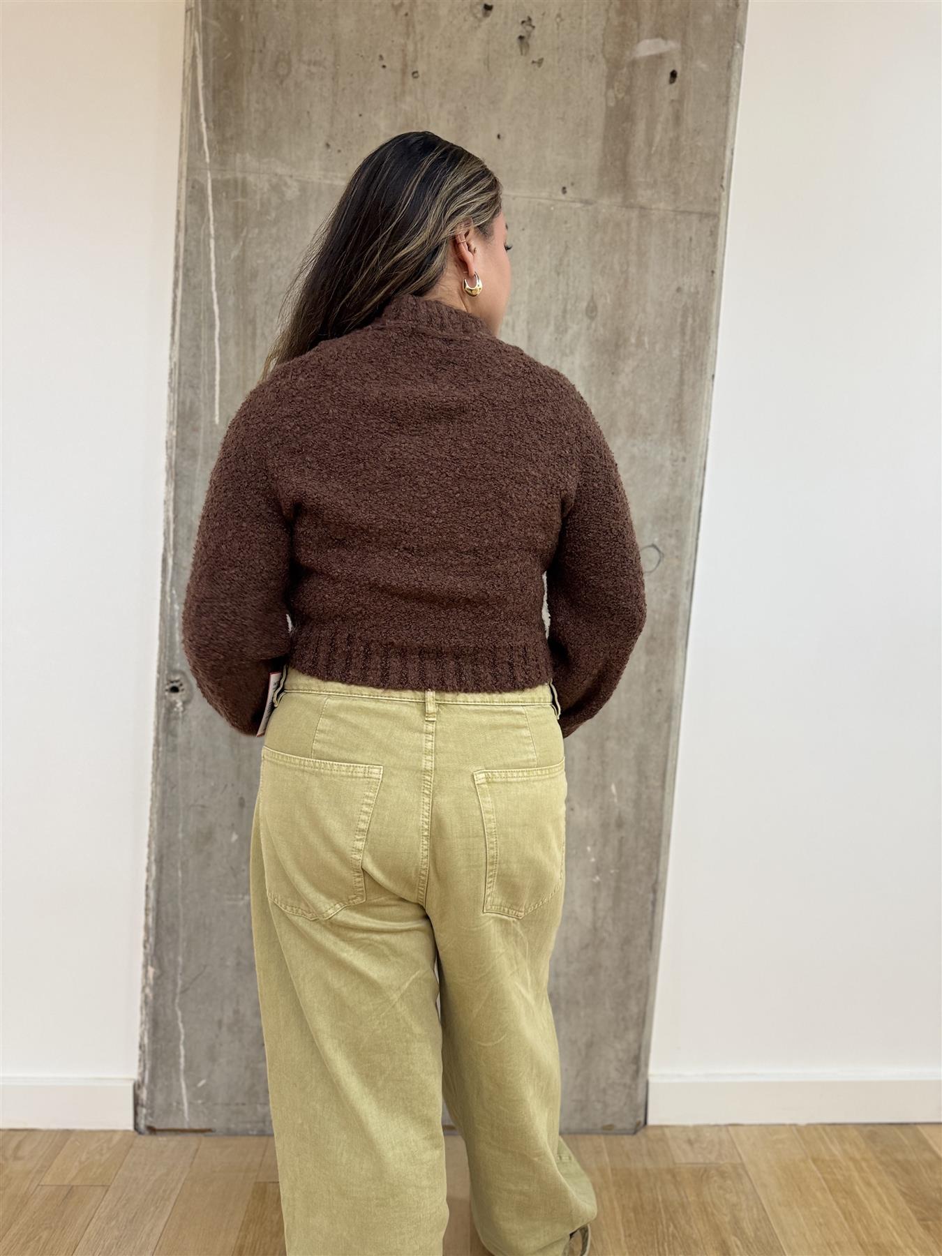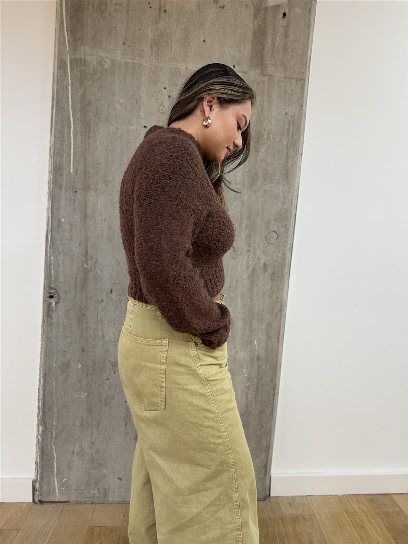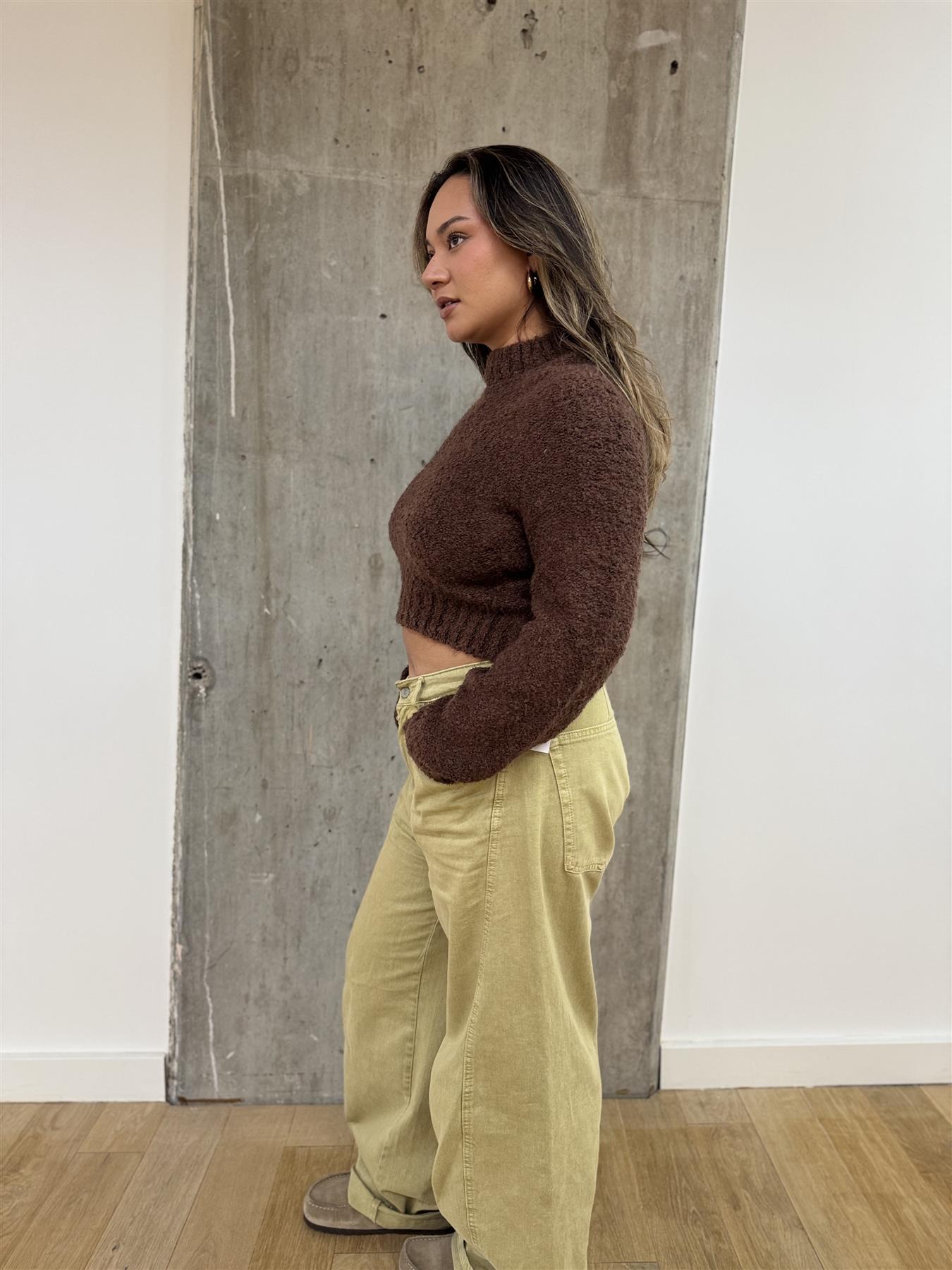 Glamorous women's Brown Crew Neck Crop-Jumper. Stay cozy and looking good in this classic glam cropped jumper! Its crew neckline and long sleeves are a timeless look, while the cropped length keeps things modern. The perfect layering piece this autumn!