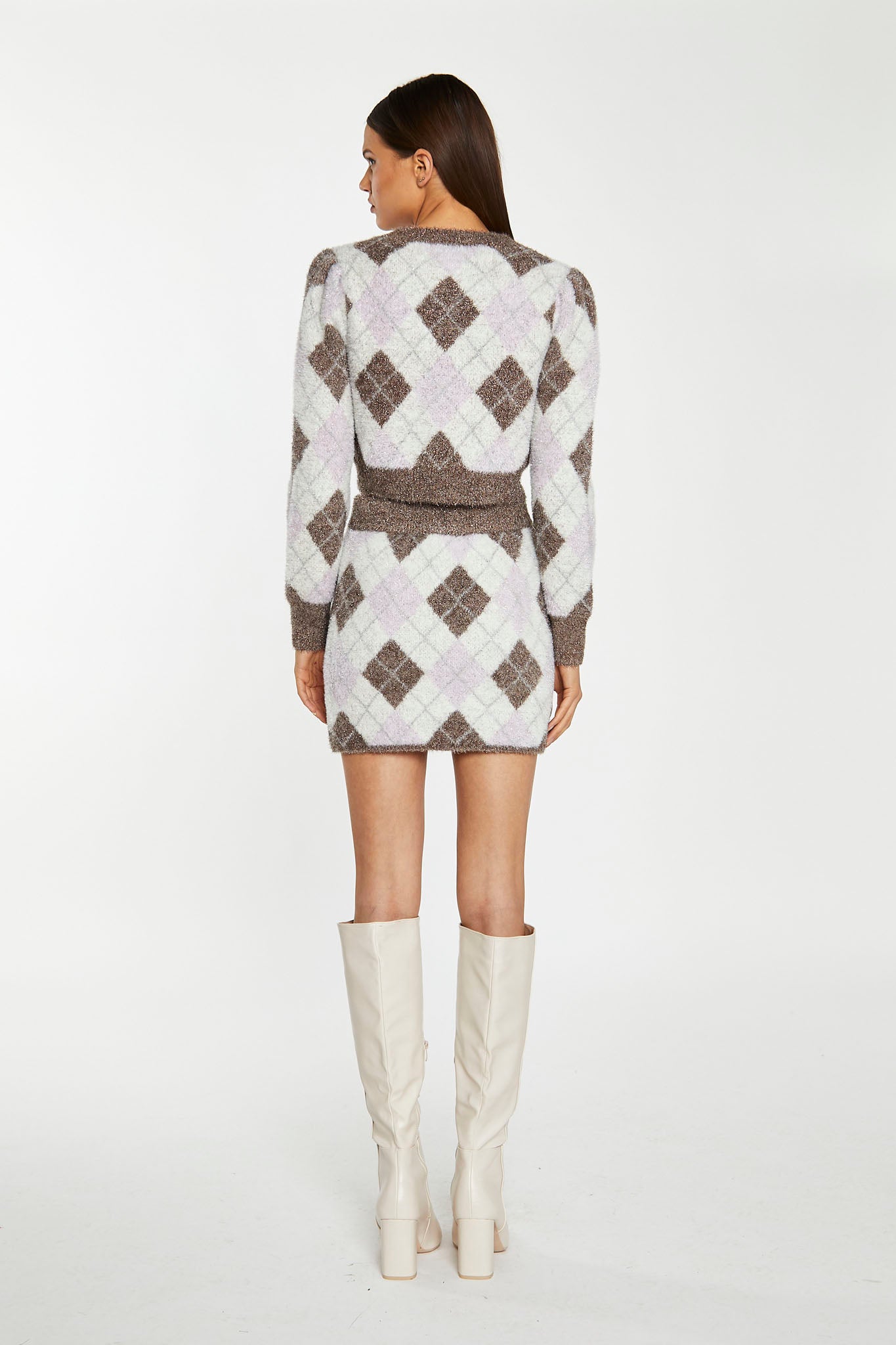 Glamorous Womens Brown Multi-Argyle Glitter Knit Crop-Jumper. Put on a sparkle show, day or night, with this glitter knit jumper! Stand out from the crowd and feel fabulous with this cropped length and cuffed sleeves combo. Its the perfect amount of chic and comfort! Pair with the matching skirt for cosy and stylish fit!