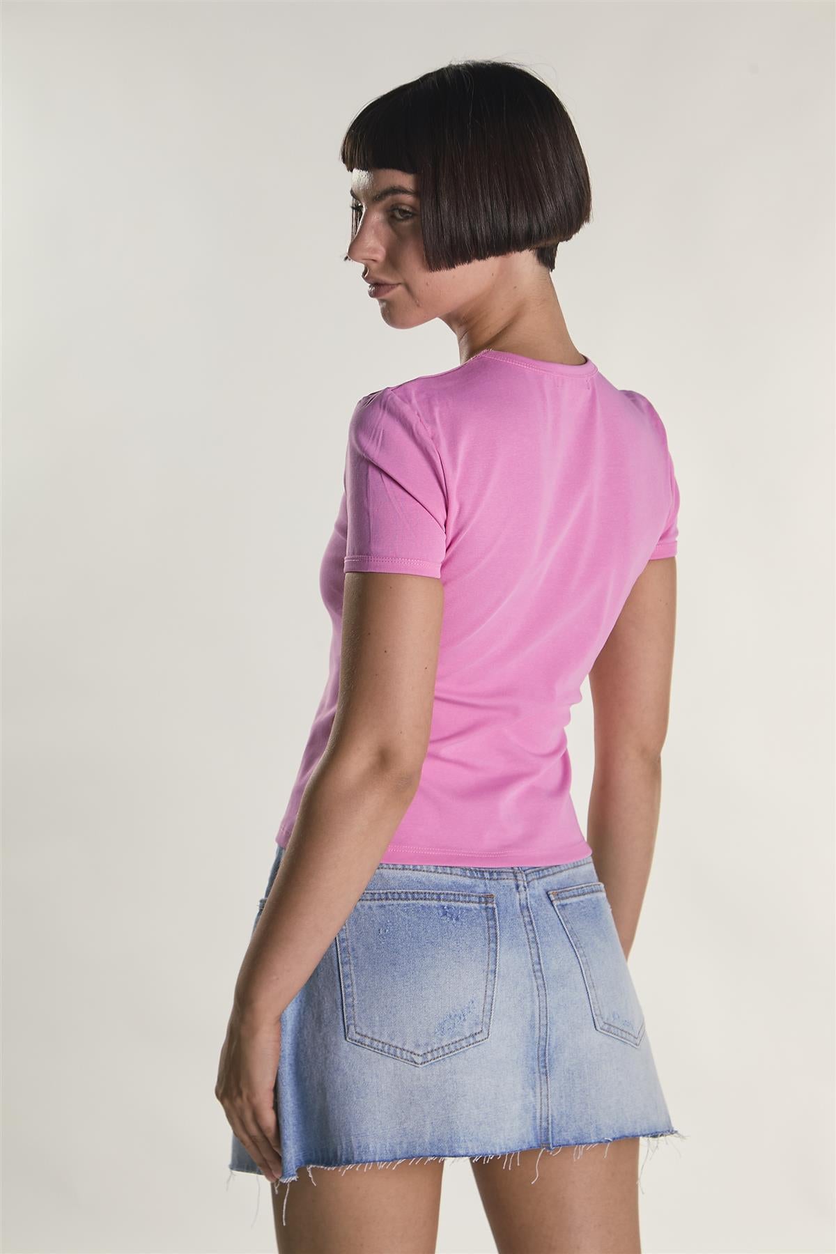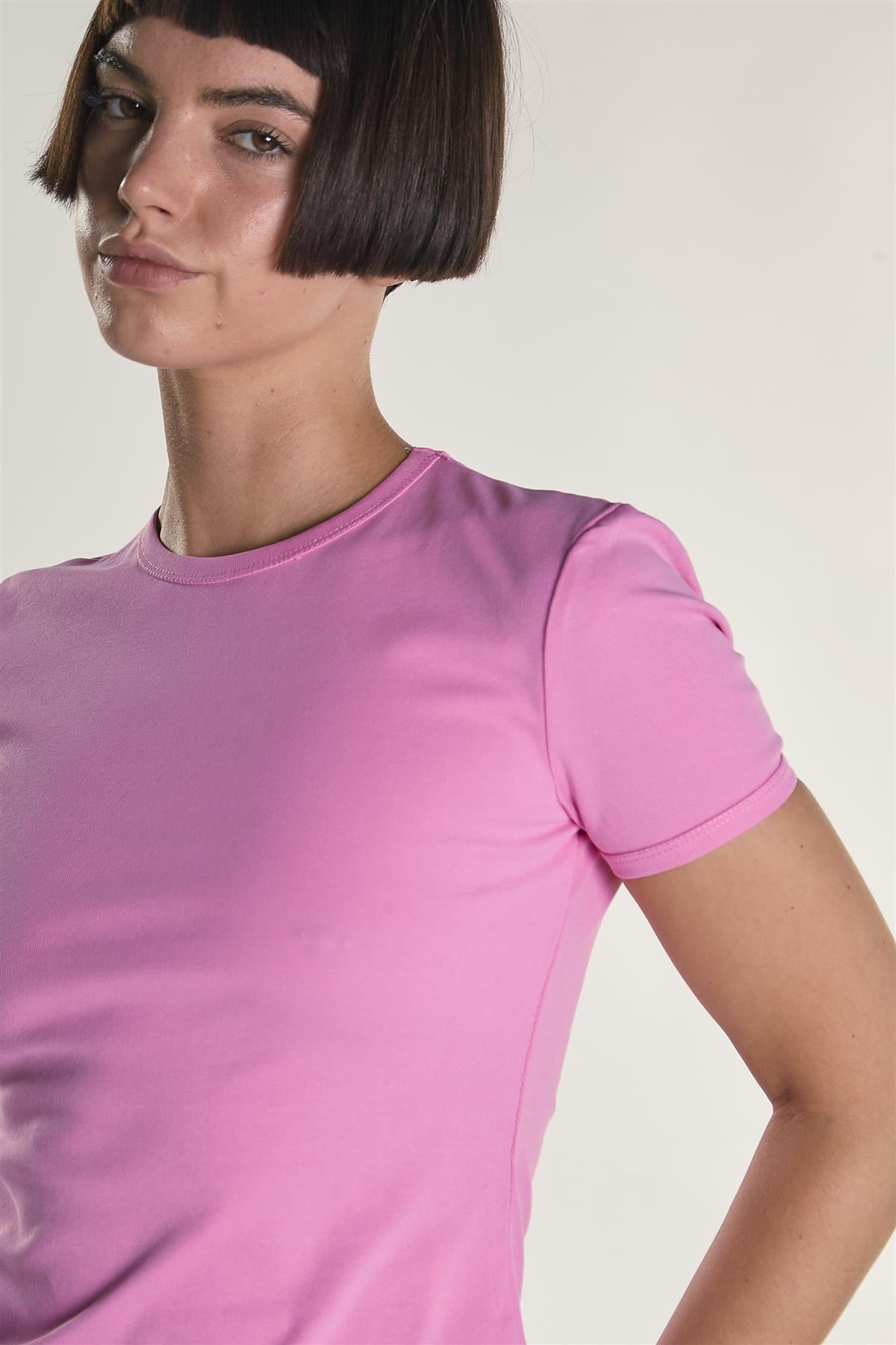 Glamorous Women's Candy-Pink Round Neckline Short Sleeve-Top. This short sleeve top keeps things simple in the best way. With its easy round neckline and regular fit, it’s made for days when comfort is key but you still want to feel put together. The sleeves hit just right, offering enough coverage without feeling bulky, and the shape gives you room to move without losing its structure. It works well on its own with jeans, skirts, or shorts, but also layers easily under jackets or cardigans when the weather calls for it. No extra fuss—just a soft, everyday piece that fits into your routine without overthinking it. A low-key staple that’s ready for whatever your day looks like.