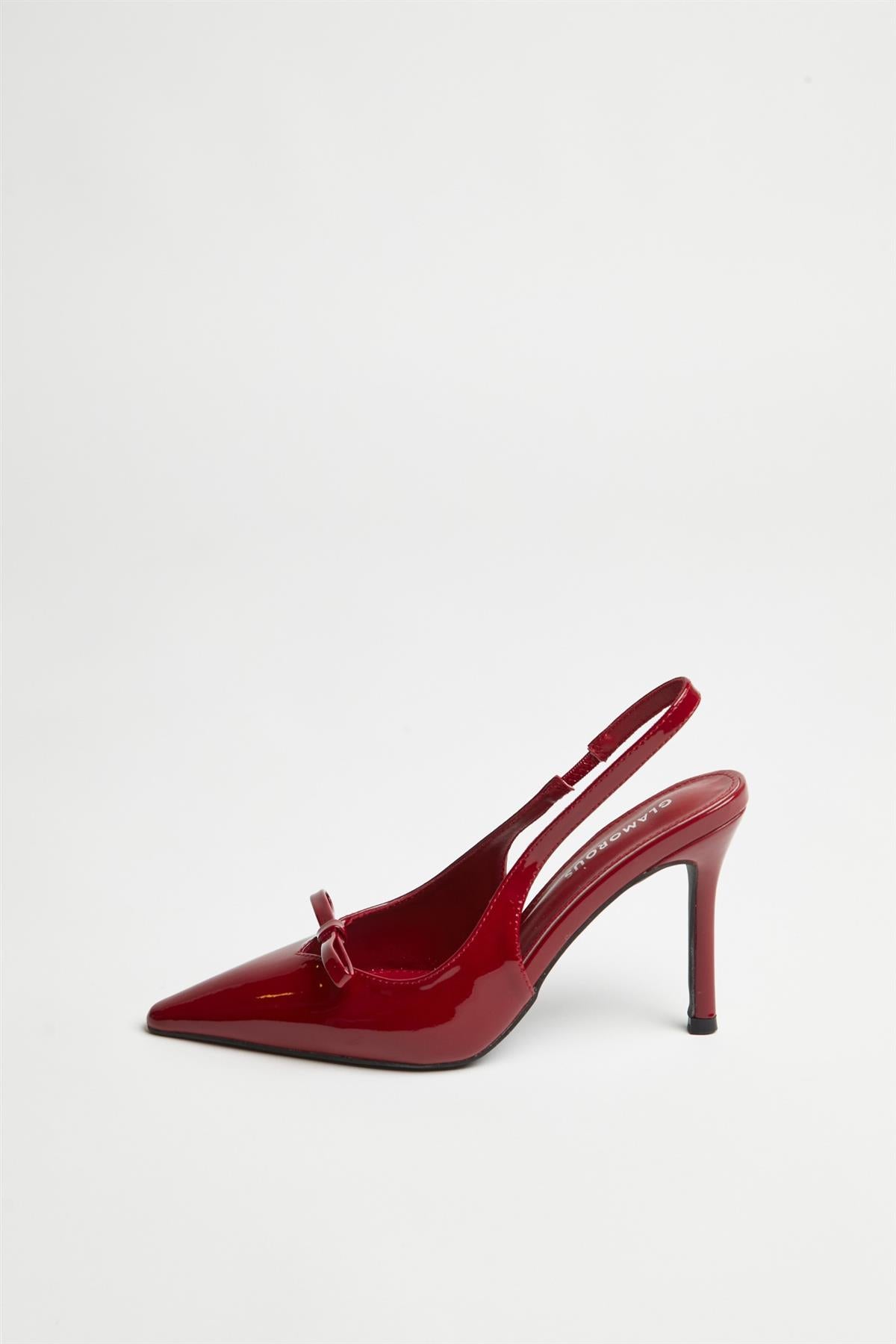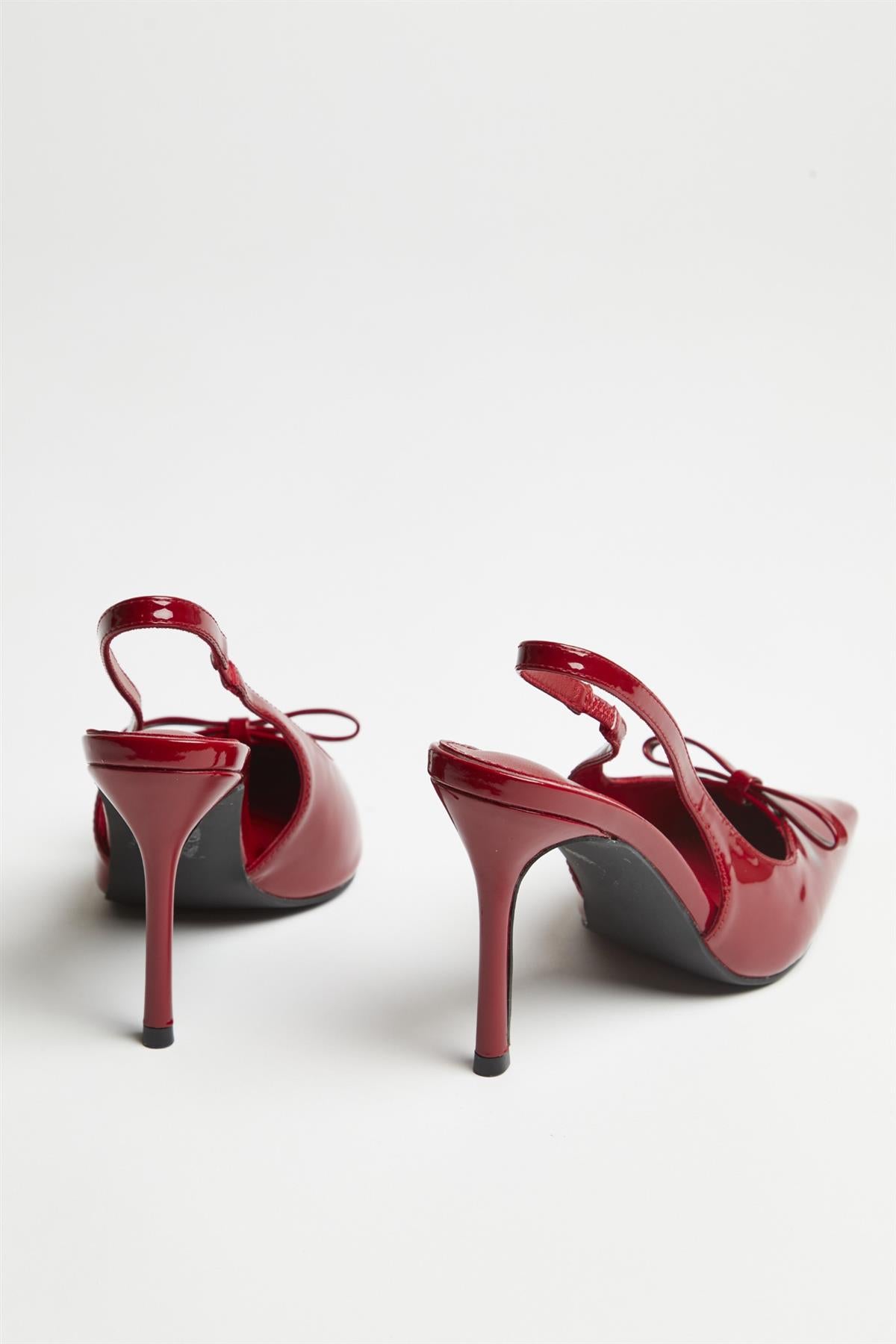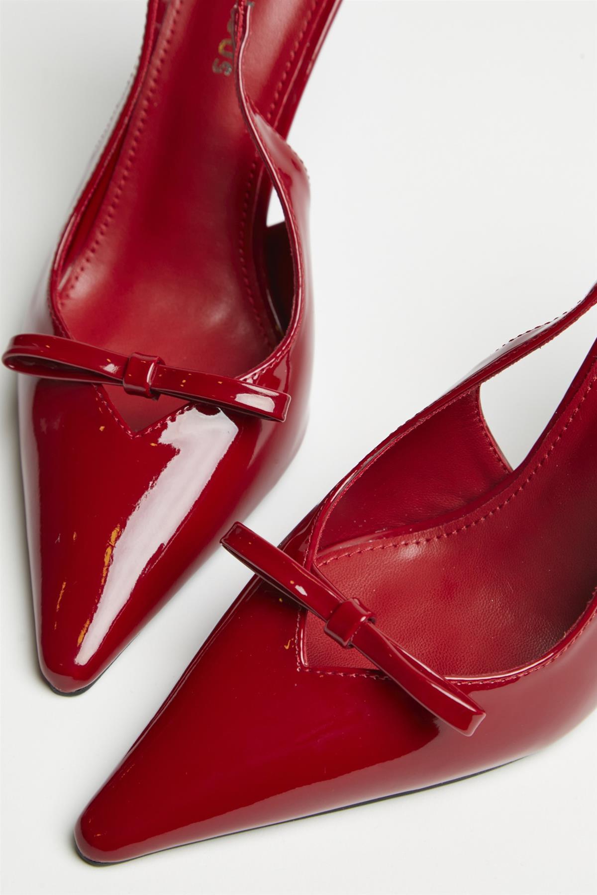 Glamorous Women's Cherry-Red Bow Slingback-Heels. Step out in style in these stunning red slingback heels! Soft PU leather wraps your feet with a cute bow at the ankle for a dainty and fashionable look. Walking in confidence never looked so easy!