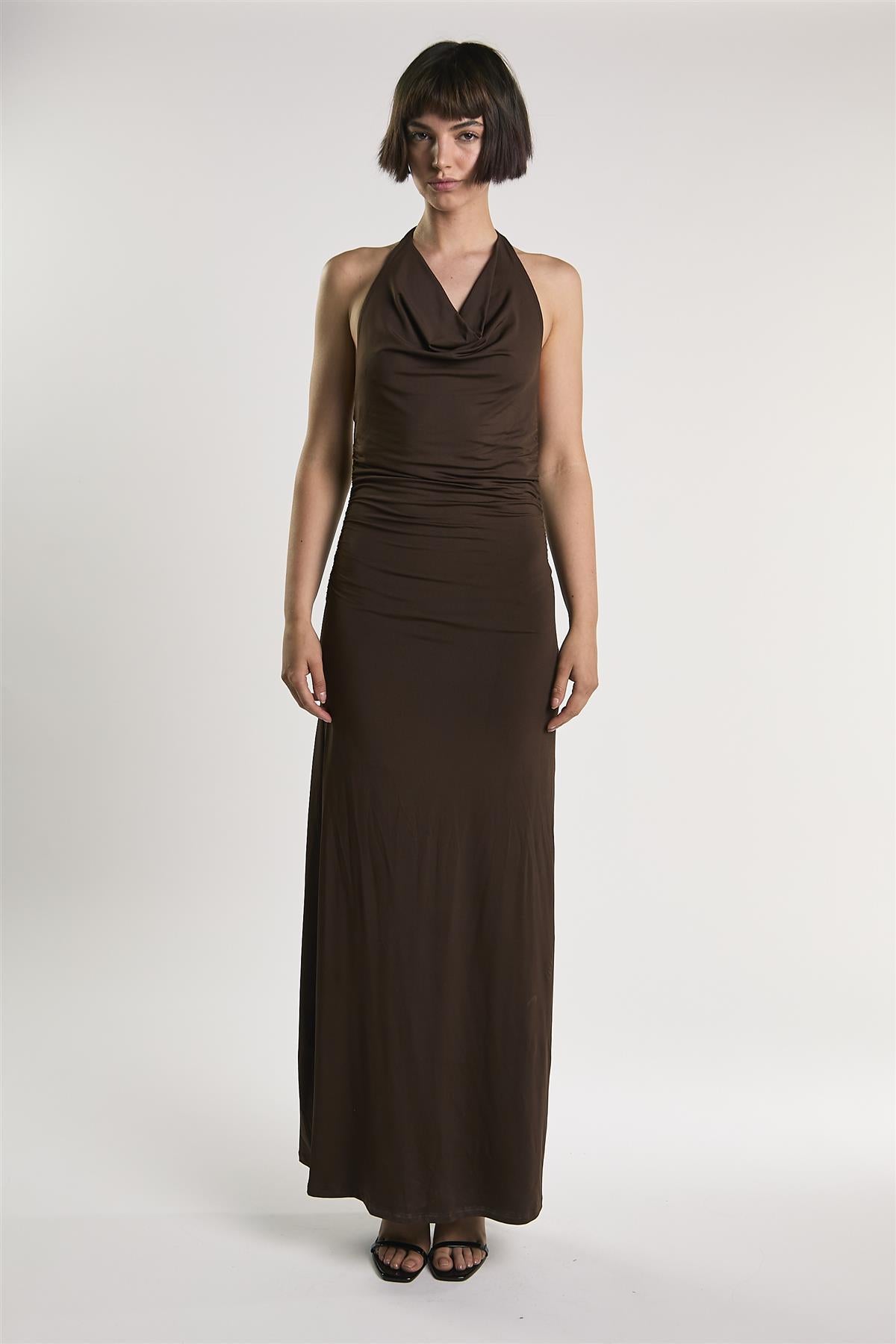 Chocolate Cowl Neck Maxi Dress