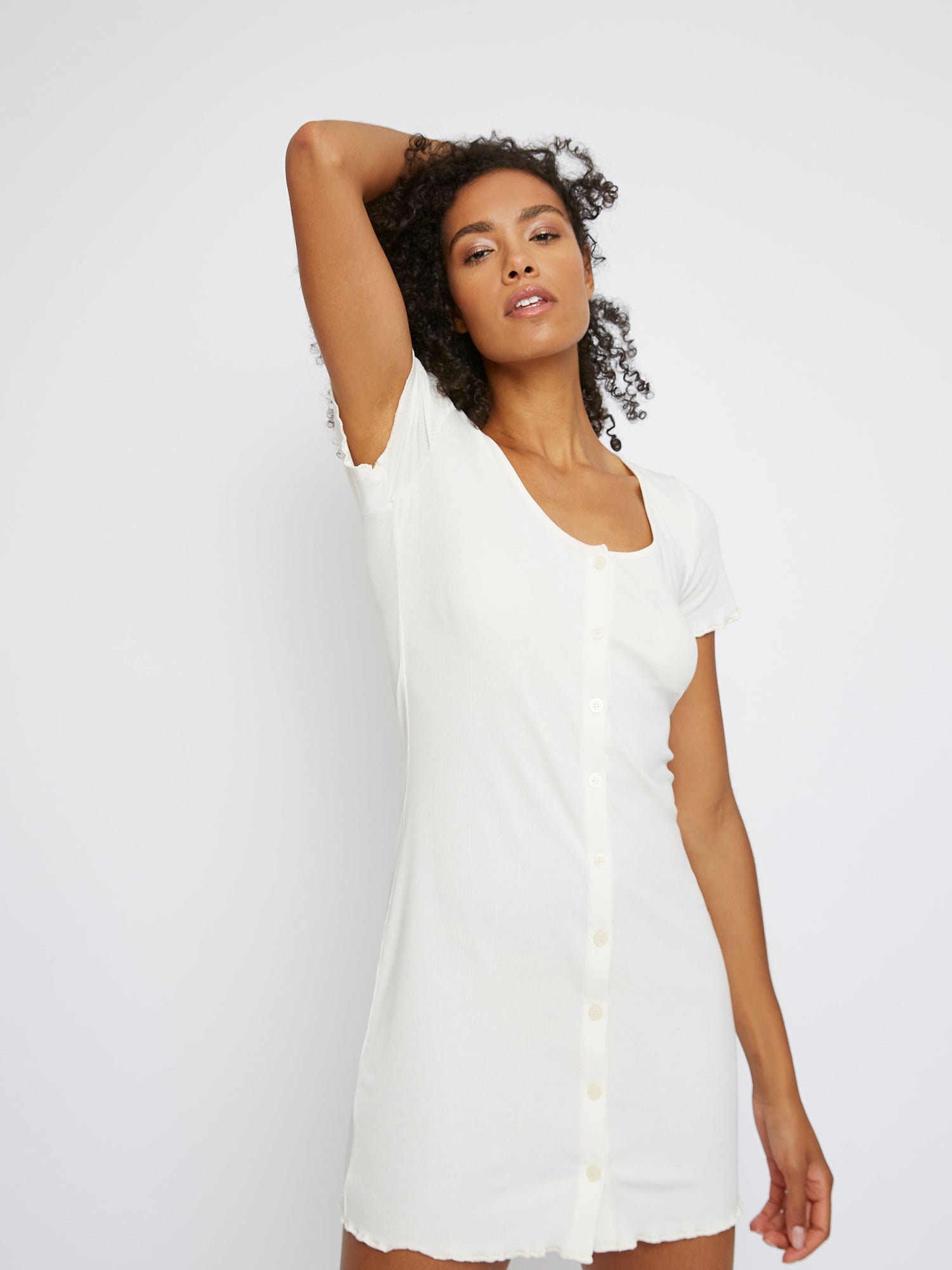 Glamorous Womens Ohh White Button Up Dress. This dress is the the perfect combination of comfort and style this summer season. Featuring a button up front and lettuce hem detail we love this dress here at Glamorous. Pair with some chunky trainers for an effortless chic look this summer.