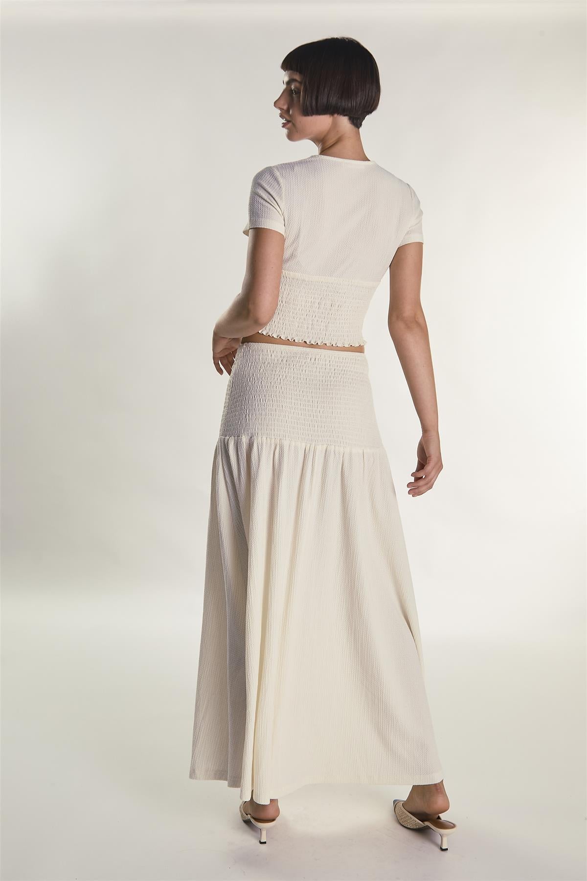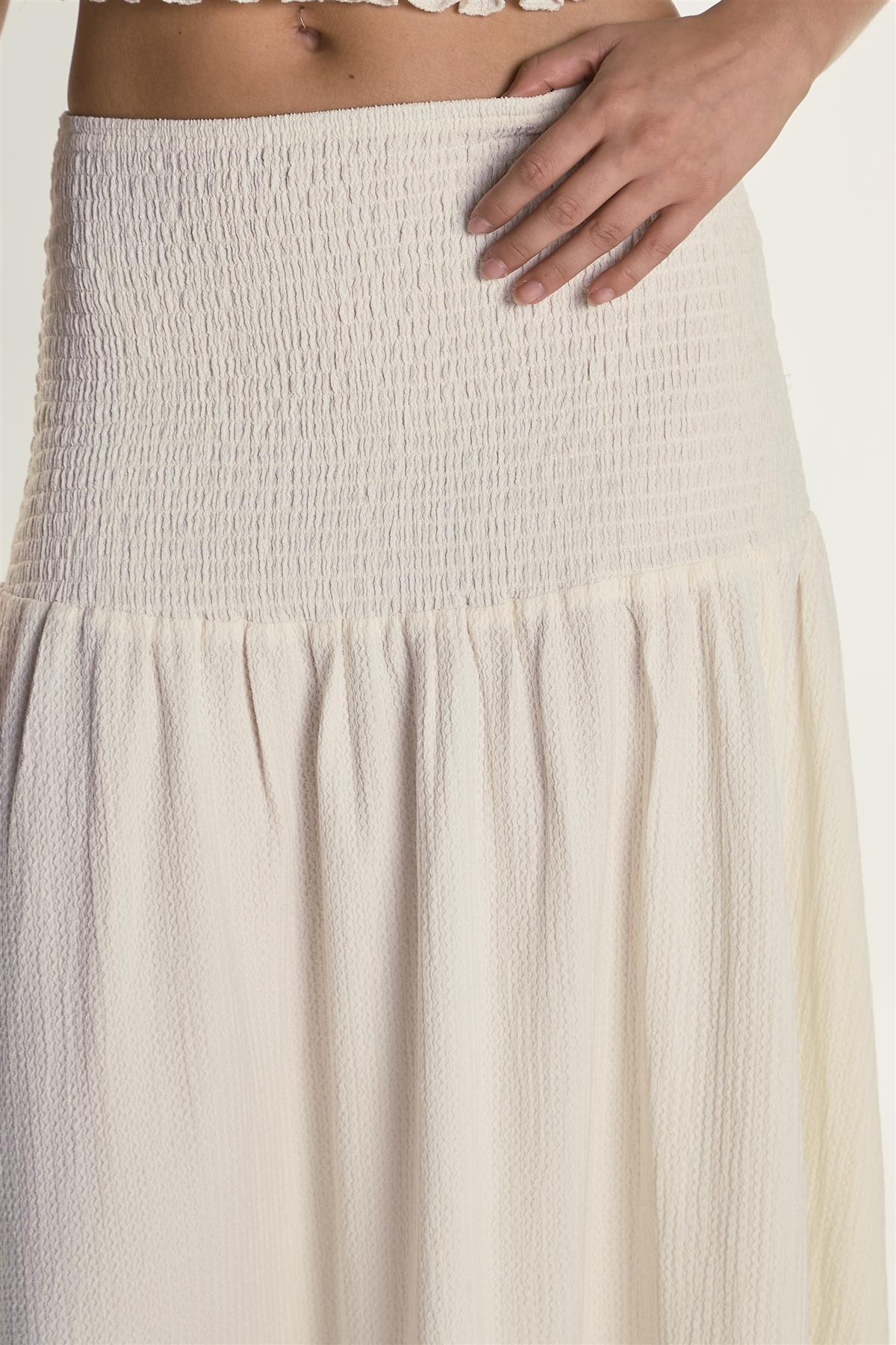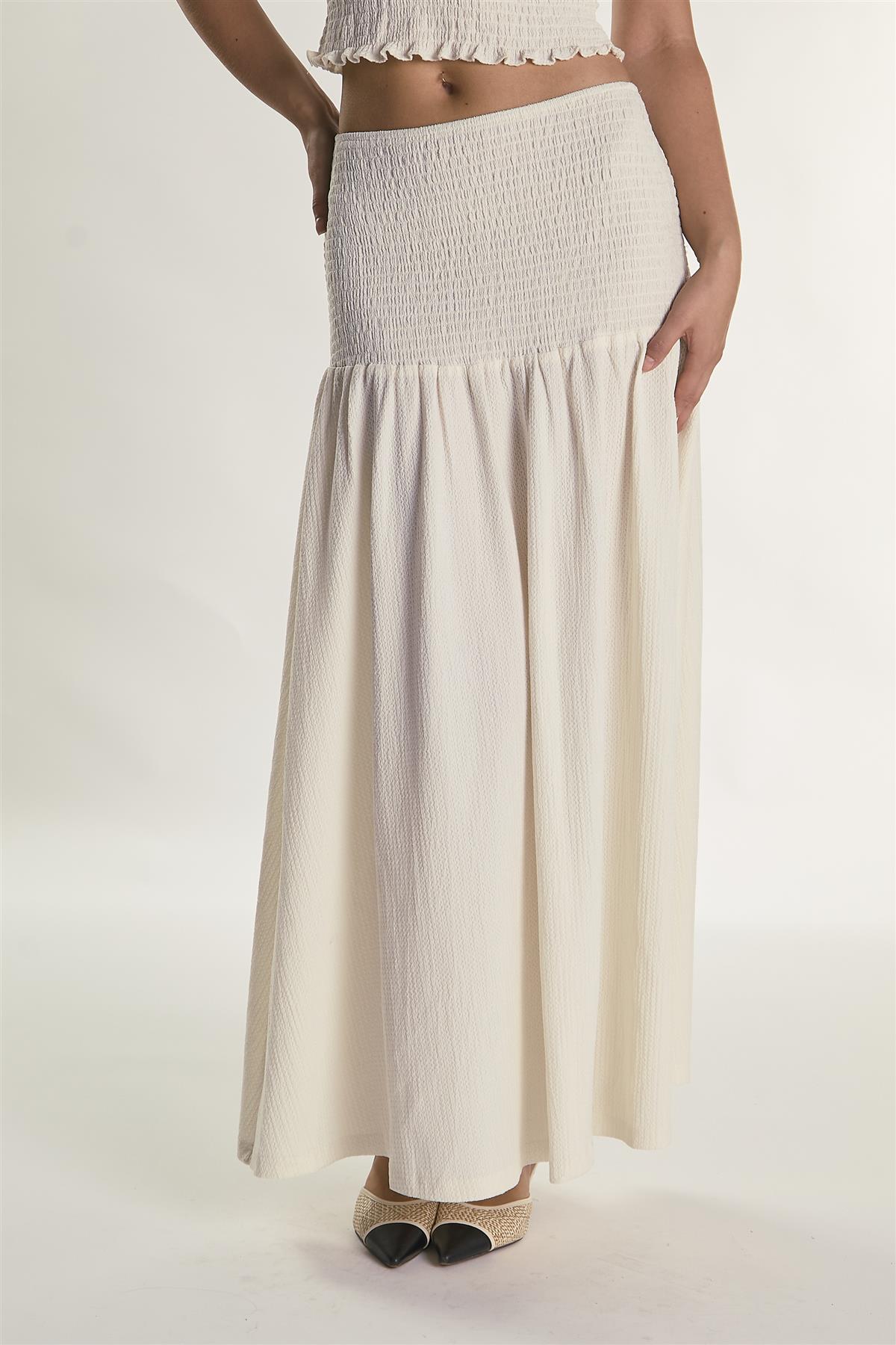 Glamorous Women's Cream Crinkle Drop Waist Maxi Skirt. Fluid texture and easy drama swirl together in this crinkle drop waist maxi skirt, offering a relaxed, confidence-flowing silhouette that skims your shape beautifully for all-day comfort and effortless style. Crinkle material brings natural, carefree movement and forgiving drape that hides any little lumps while feeling soft against the skin, making it a supportive choice for busy plans or chill vibes alike. A flared bottom widens gracefully at the hem, adding playful sway and leg-elongating poise that turns simple steps into something special without restriction. Flowy design glides over the body with lightweight ease, creating balanced proportions from the drop waist down for a flattering, feminine lift that pairs naturally with tucked-in tops. This skirt simplifies outfit building, helping you feel put-together and free. Style with a fitted cami or simple blouse to let the crinkle material, flared bottom, and flowy layers shine effortlessly.