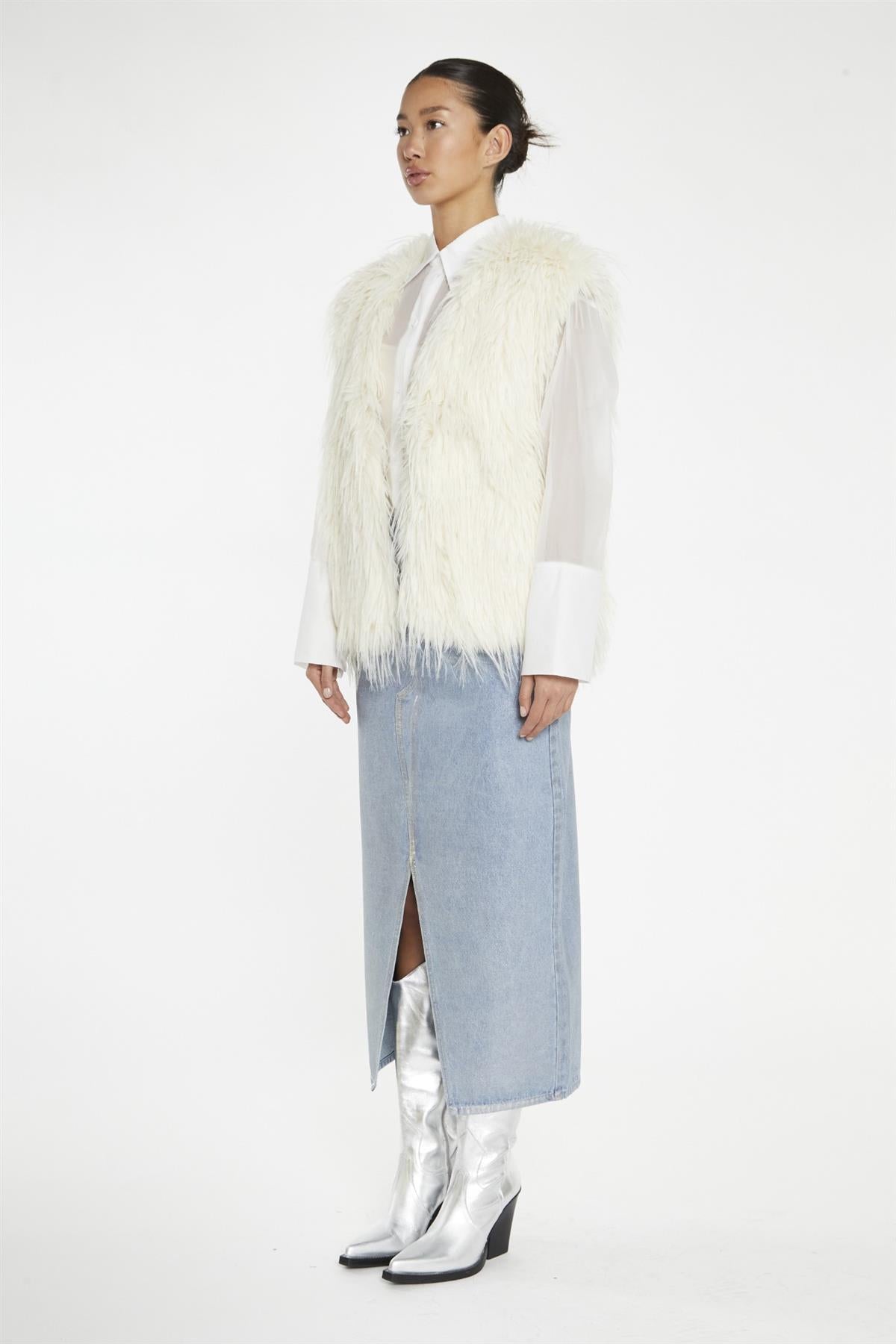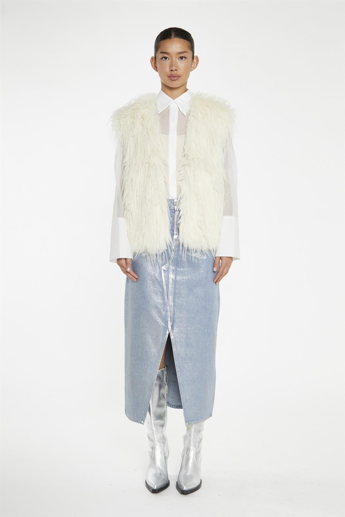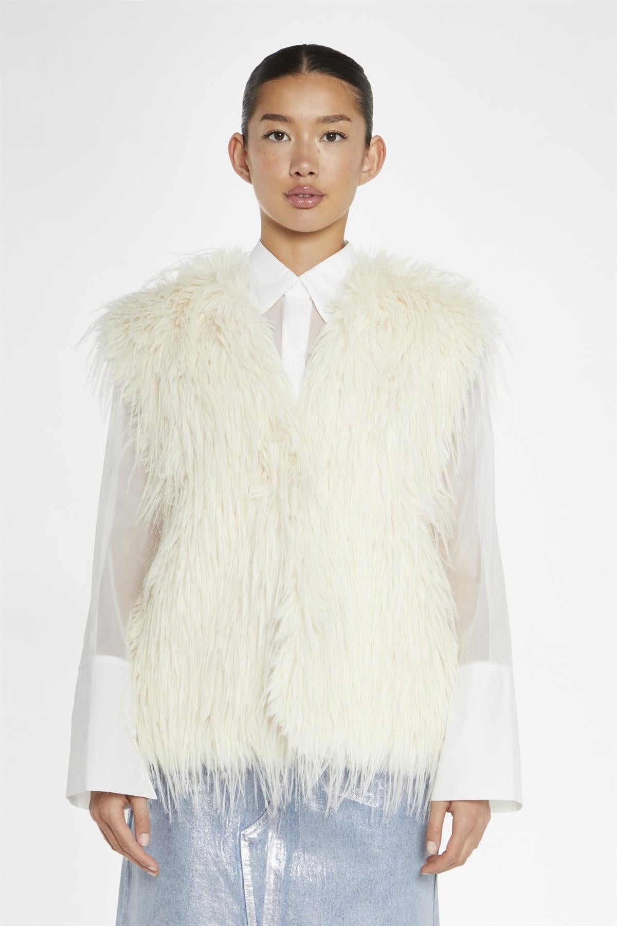 Glamorous Women's Cream Faux Fur Gilet. Cozy up in our Cream Faux Fur Gilet and get ready to stay warm and stylish all season long. This plush, sleeveless piece features a luxurious faux fur exterior that's soft to the touch and sure to keep you toasty. The classic gilet shape adds a touch of timeless elegance, making it the perfect layering piece to elevate any outfit. Slip it on over your favourite sweater and jeans for an instant boost of warmth and style, or use it to add a touch of glamour to a more casual look. Crafted with attention to detail, this gilet is a must-have addition to your cold-weather wardrobe, blending fashion and function seamlessly.