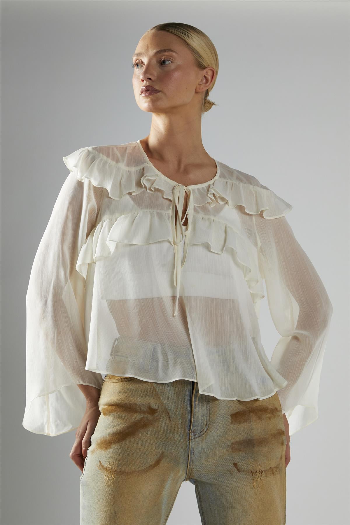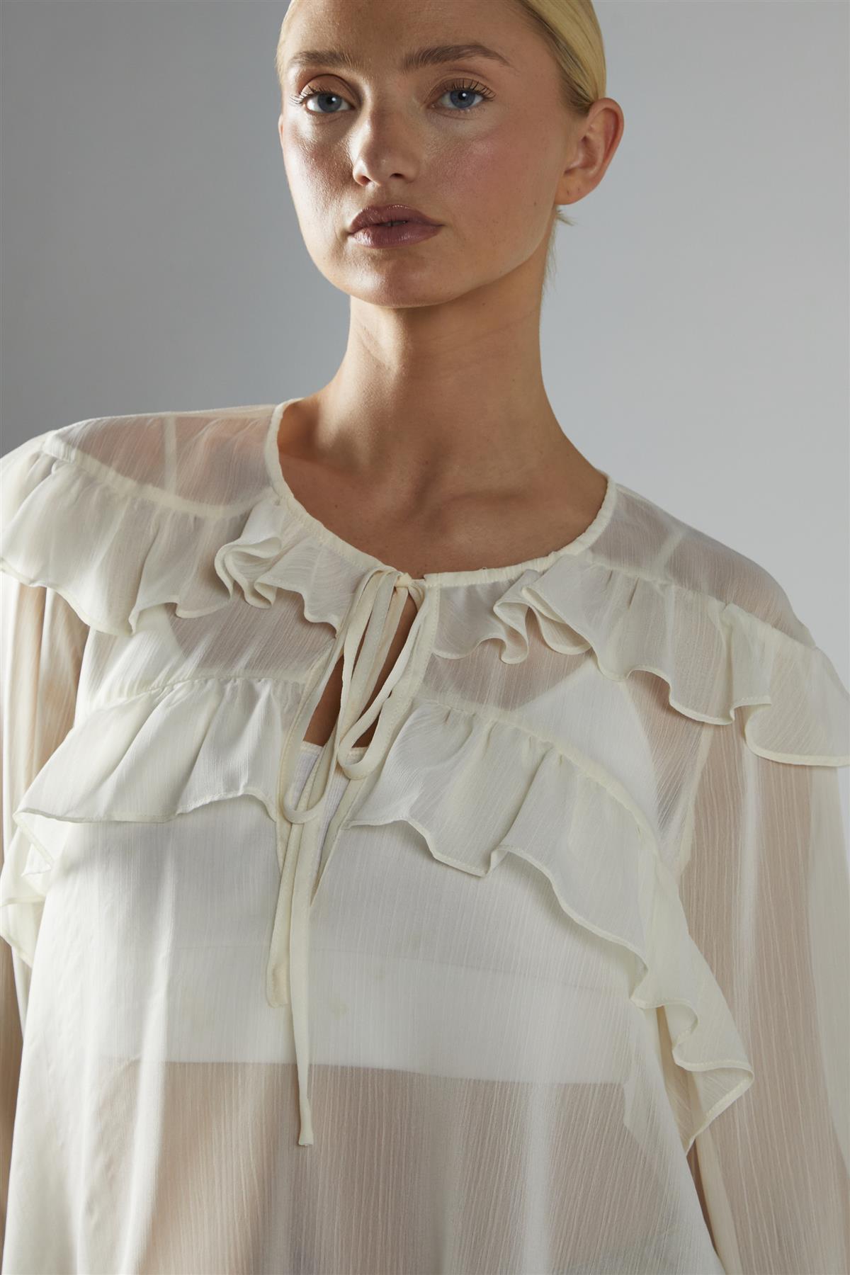 Cream Ruffle Blouse