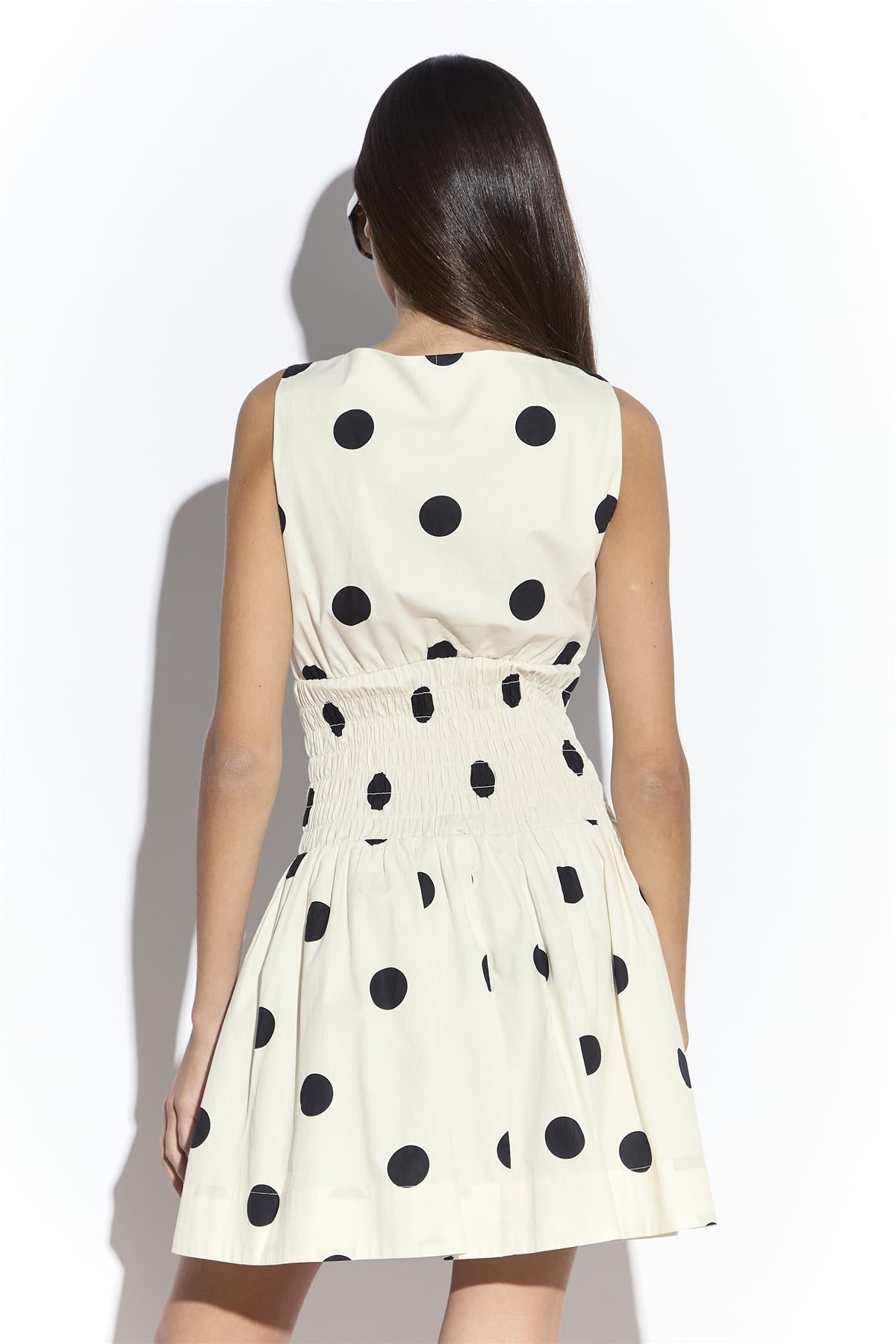 Narrated Women's Cream Spot Smocked Waist Mini Dress - Cream Spot. A perfect balance of relaxed charm and flattering shape, this mini dress brings effortless style to any occasion. The boat neckline creates a subtle, elegant frame for the shoulders, while the sleeveless cut keeps the look light and easy to wear. The smocked waist adds definition and a touch of structure, ensuring a comfortable yet flattering fit that moves with you. Designed to highlight simplicity and feminine detail, this piece offers versatility and ease. Style with delicate sandals or sleek flats for a polished, understated finish that feels naturally confident.